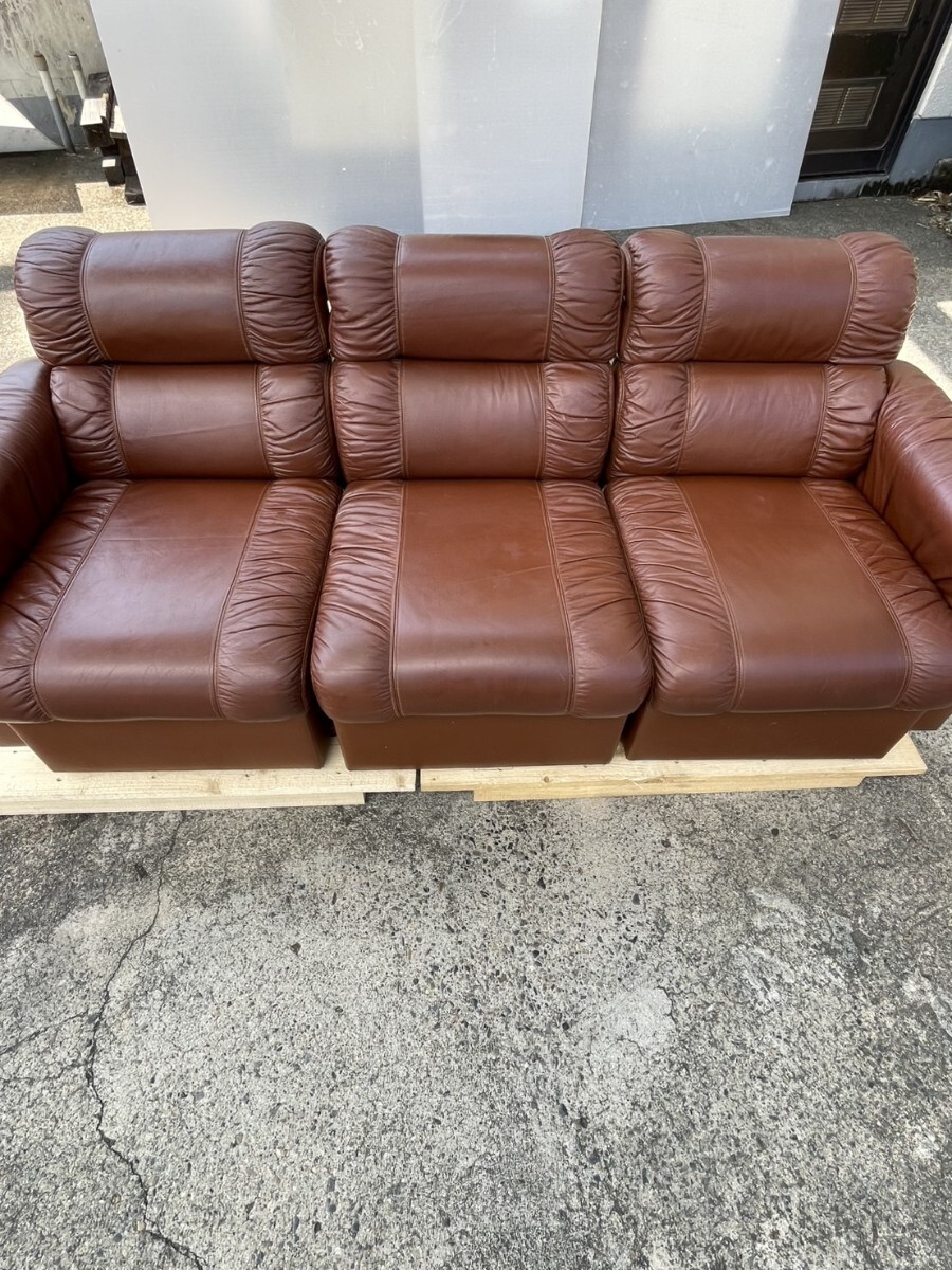 本革 ヴィンテージ調 レザー ソファー 3脚セット ブラウン 中古