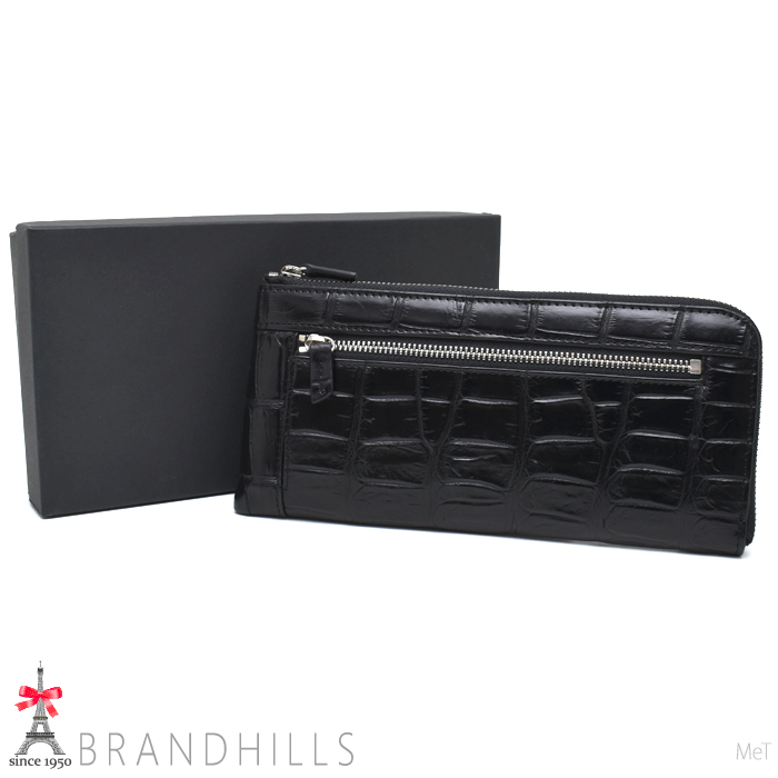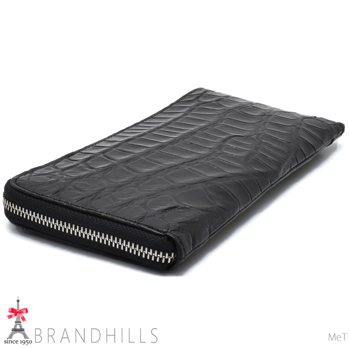 クロコダイル 長財布 メンズ レディース ブラック マット加工 L字ファスナー 新品