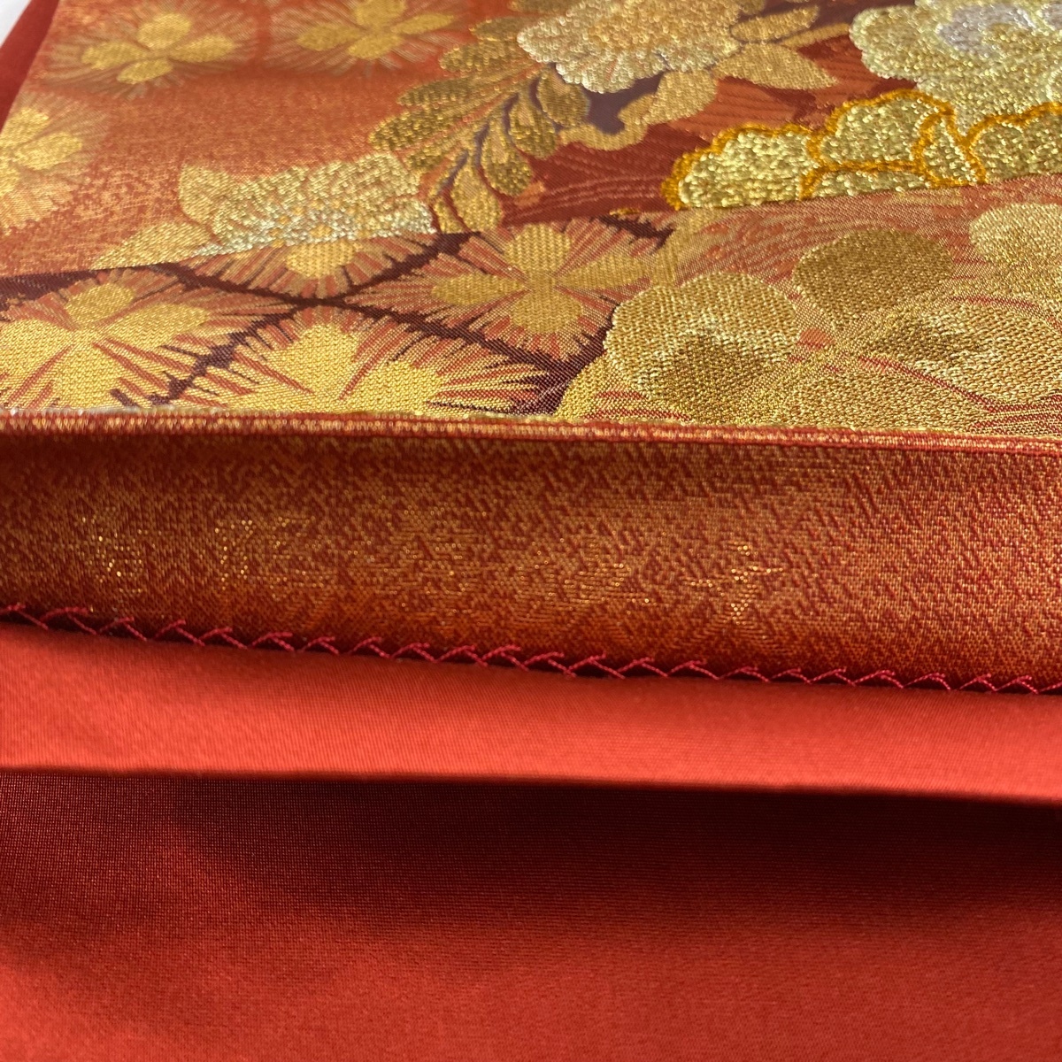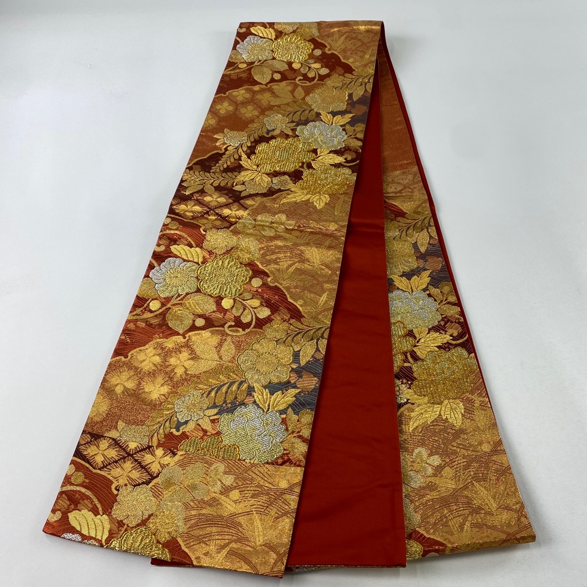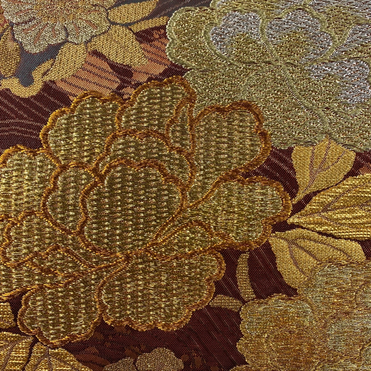 | 袋帯 美品 秀品 牡丹 草花 金銀糸 箔 茜色 六通 正絹 【中古】 |