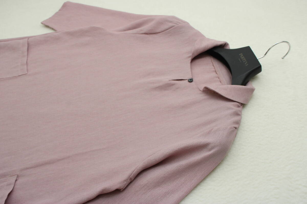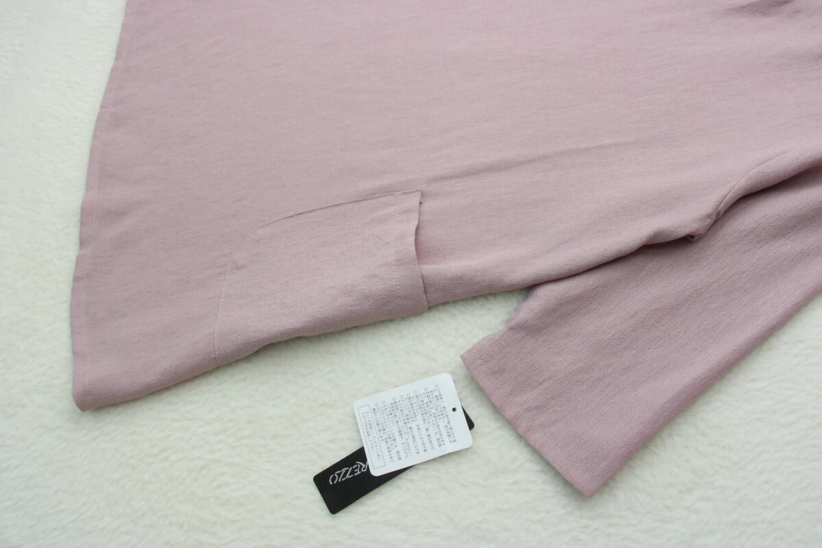 3574 新品タグ付き 麻混八分袖チュニック ピンクM~Lサイズ