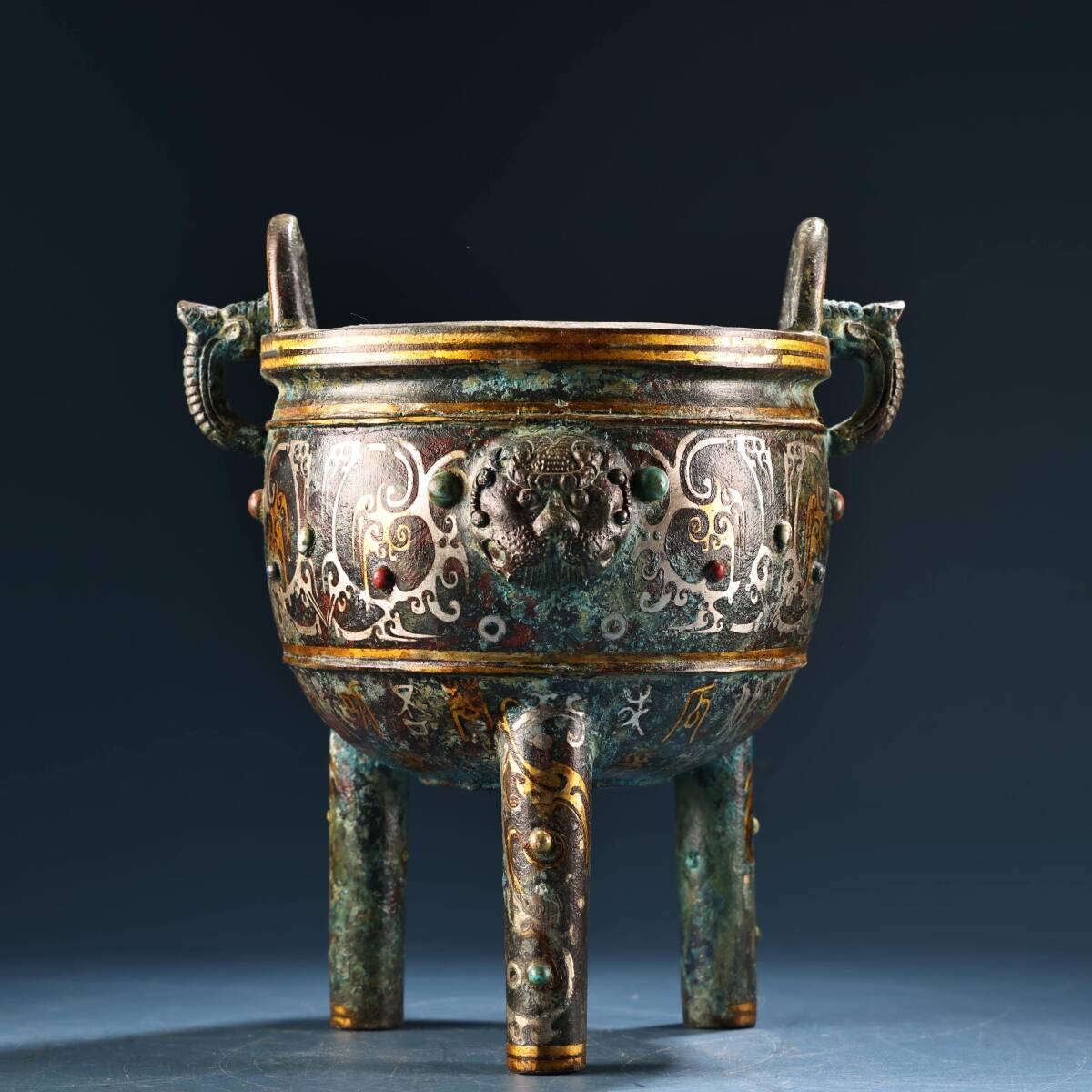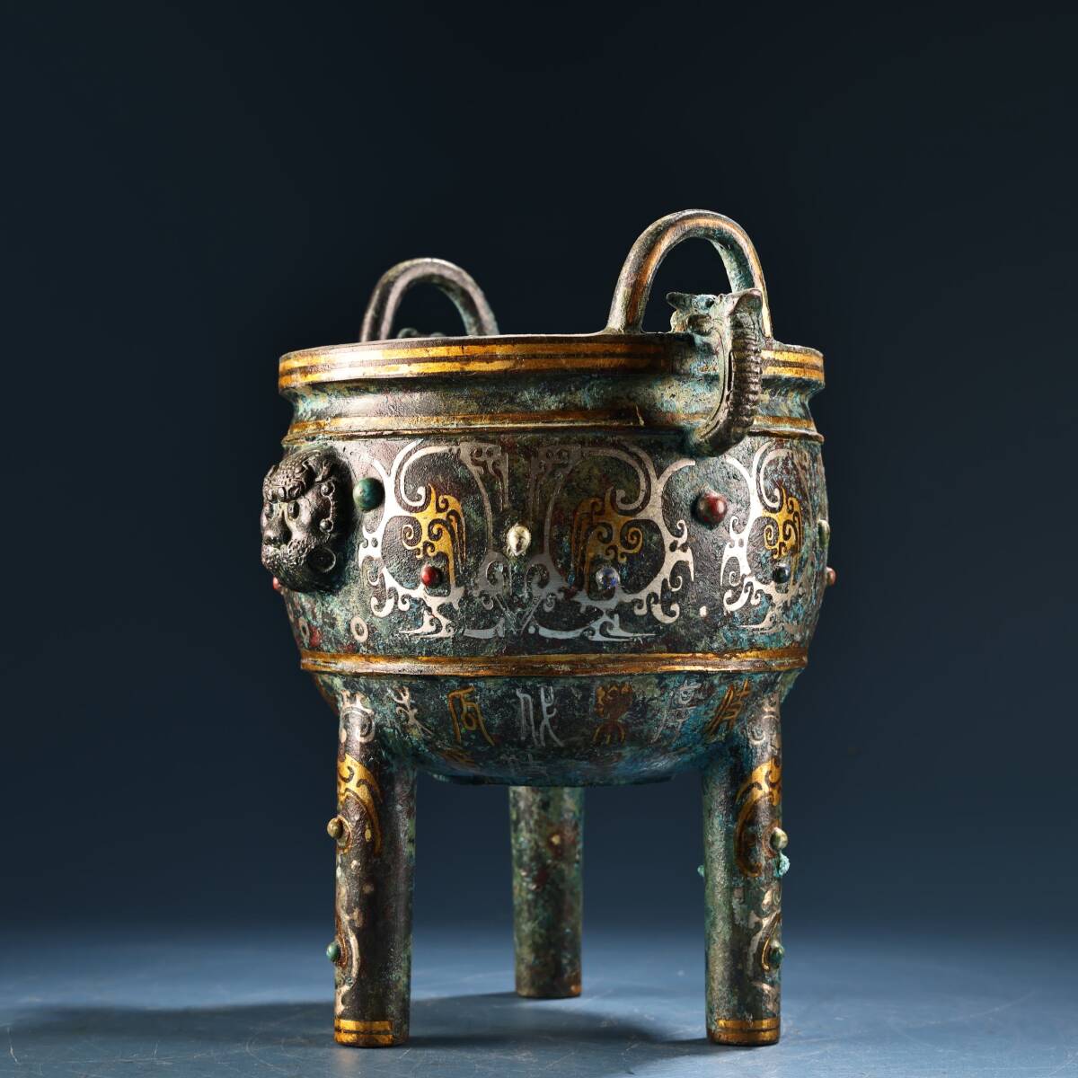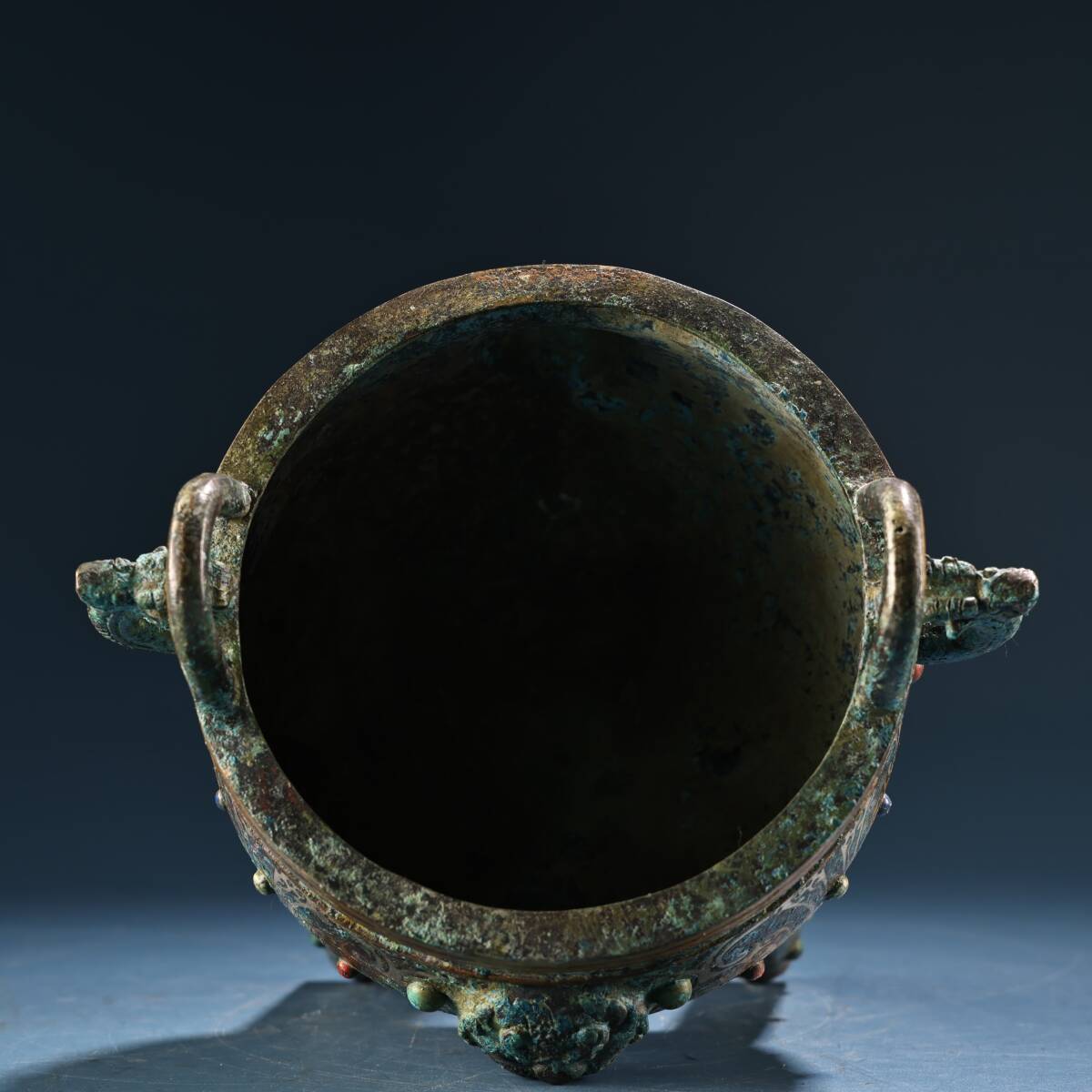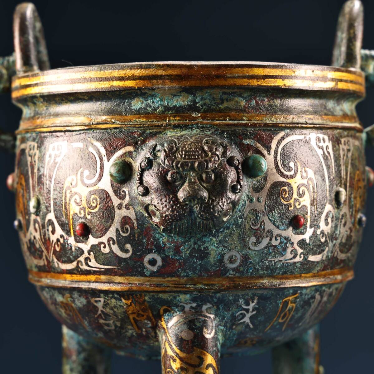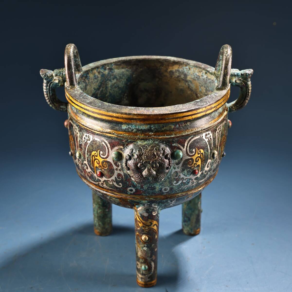 唐物 清 錯金銀 モザイク宝石 青銅器 獣頭円鼎 銅製品 銅器 極細工 古美術品 時代物 中国古玩 骨董品 D68