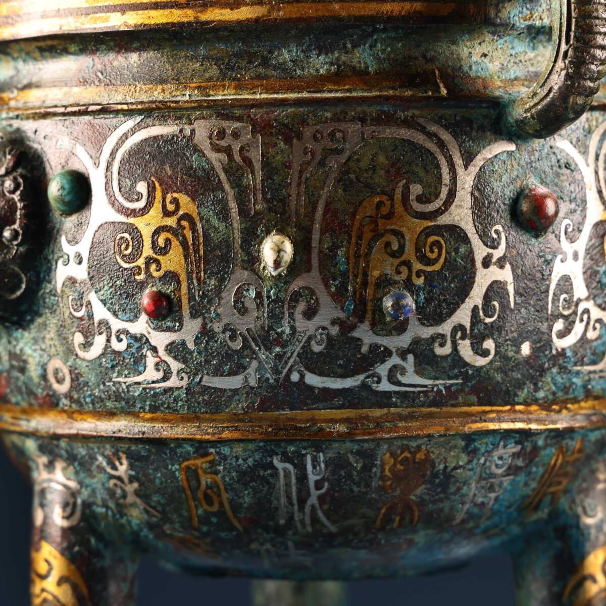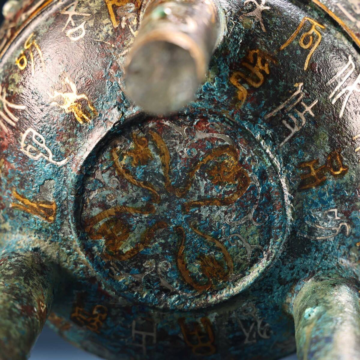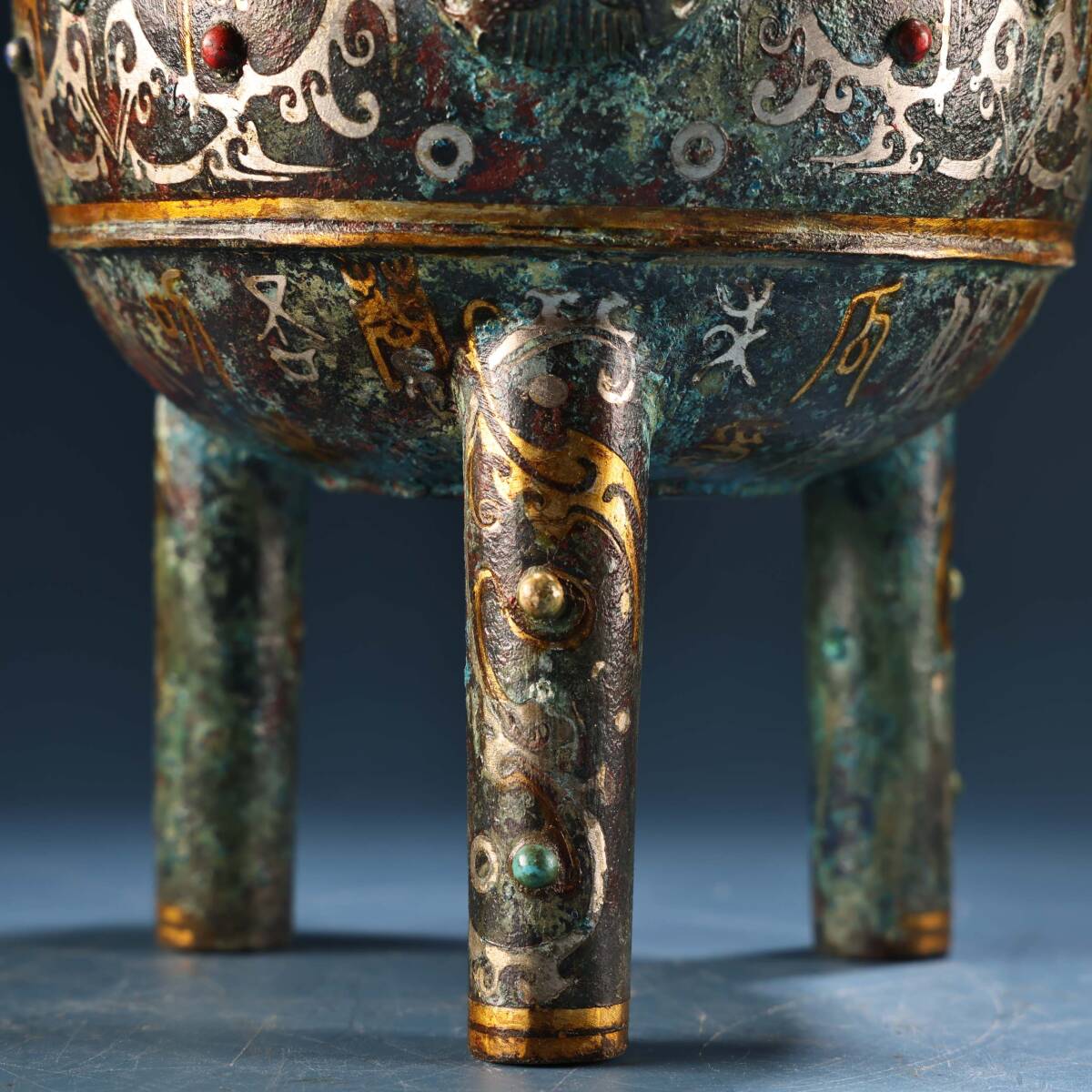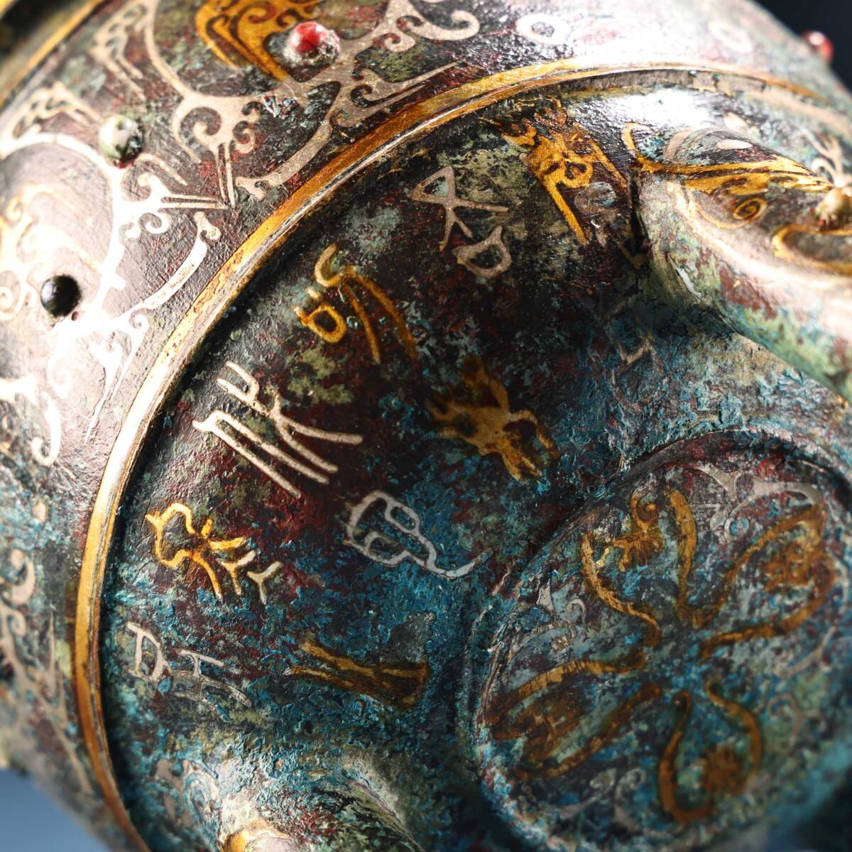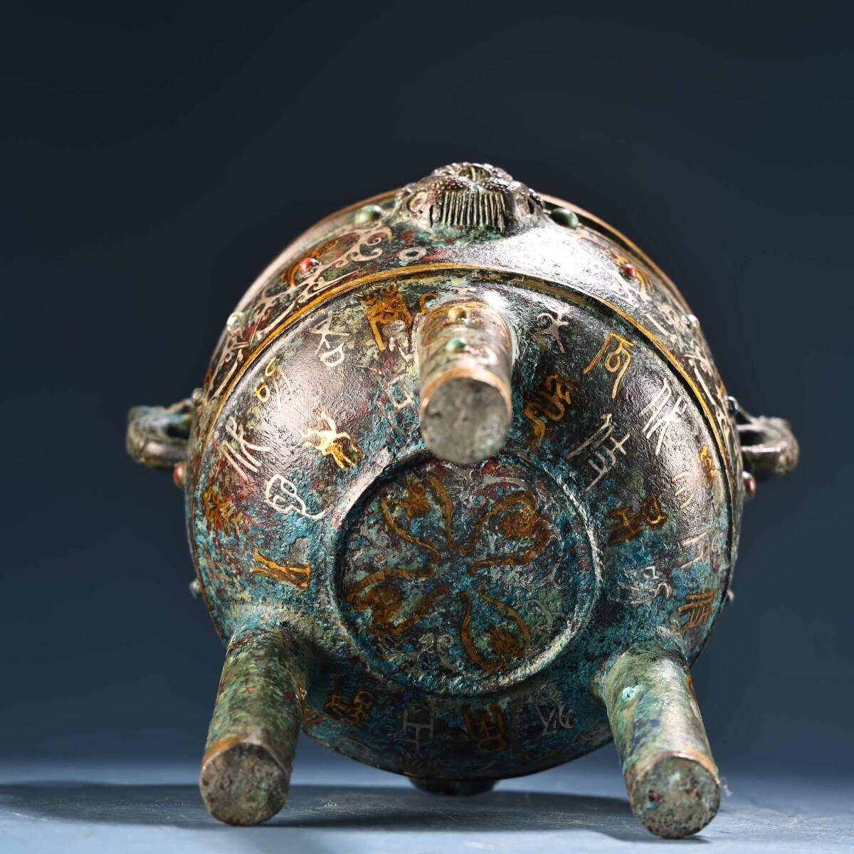 唐物 清 錯金銀 モザイク宝石 青銅器 獣頭円鼎 銅製品 銅器 極細工 古美術品 時代物 中国古玩 骨董品 D68