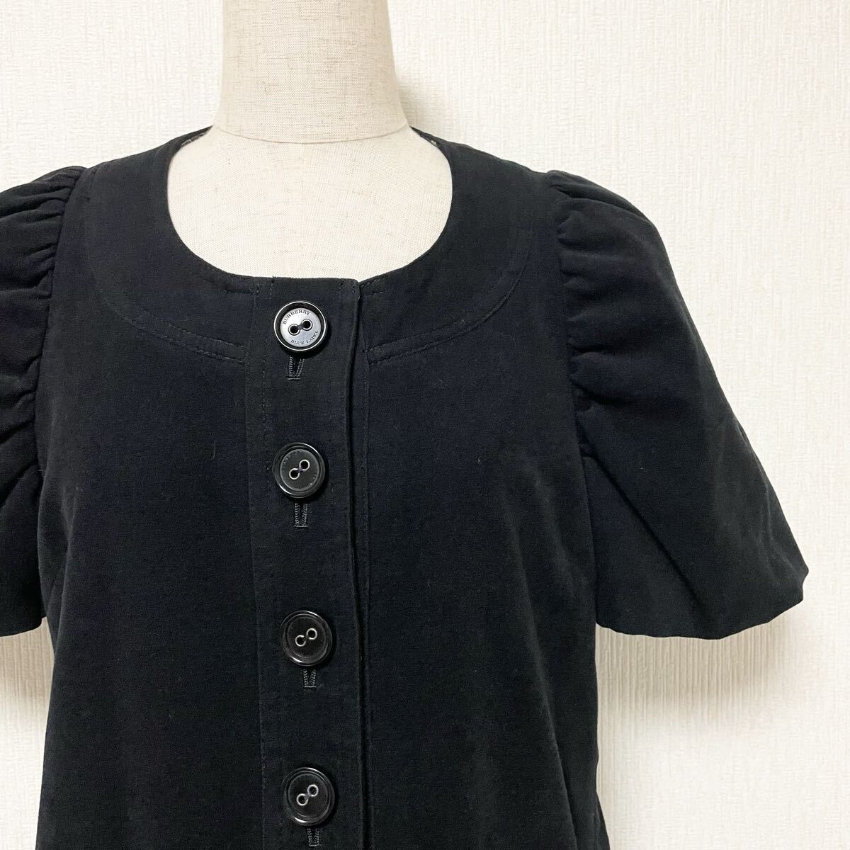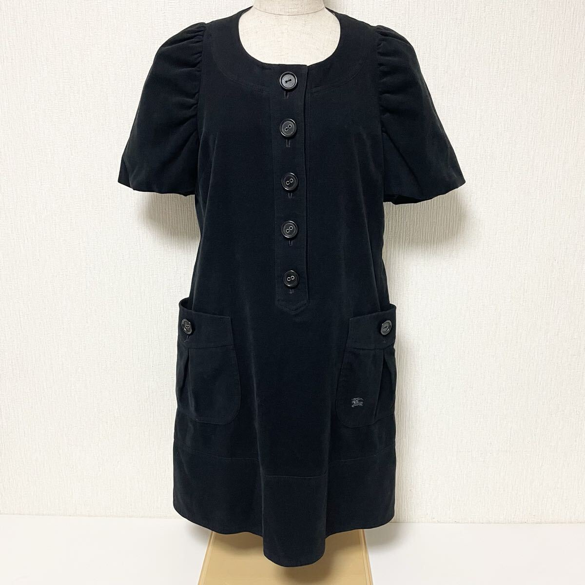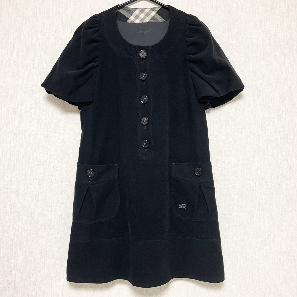 即決☆BURBERRY バーバリー ブルーレーベル チュニック ワンピース パフスリーブ ブラック ロゴ ホース 刺繍 38 M