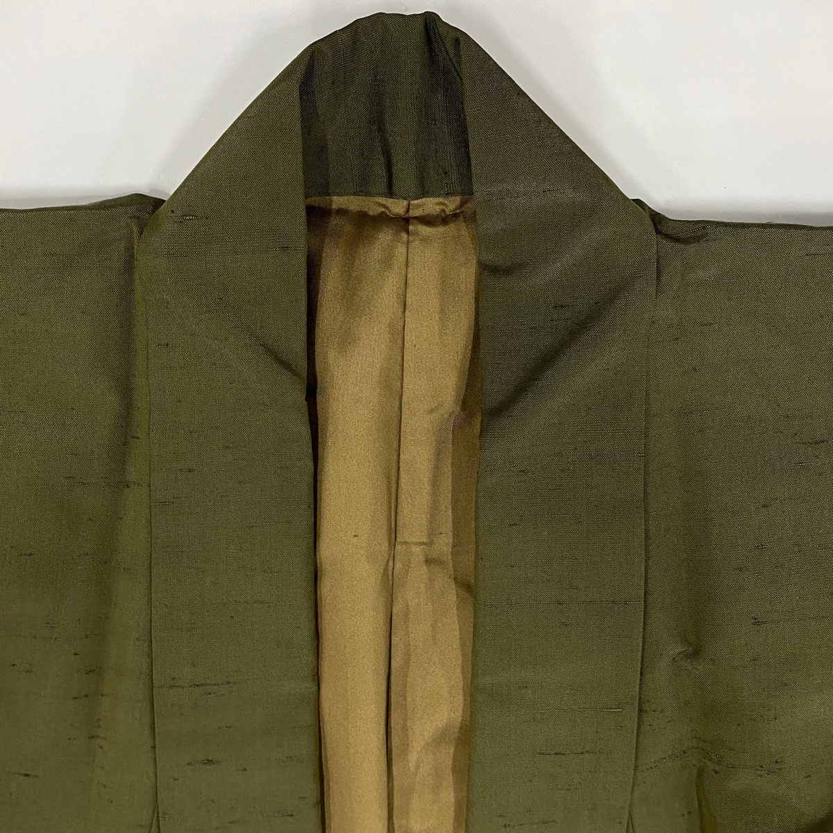 | 男着物 名品 紬 茶緑色 袷 身丈139.5 裄丈71.5 S 正絹 【中古】 |