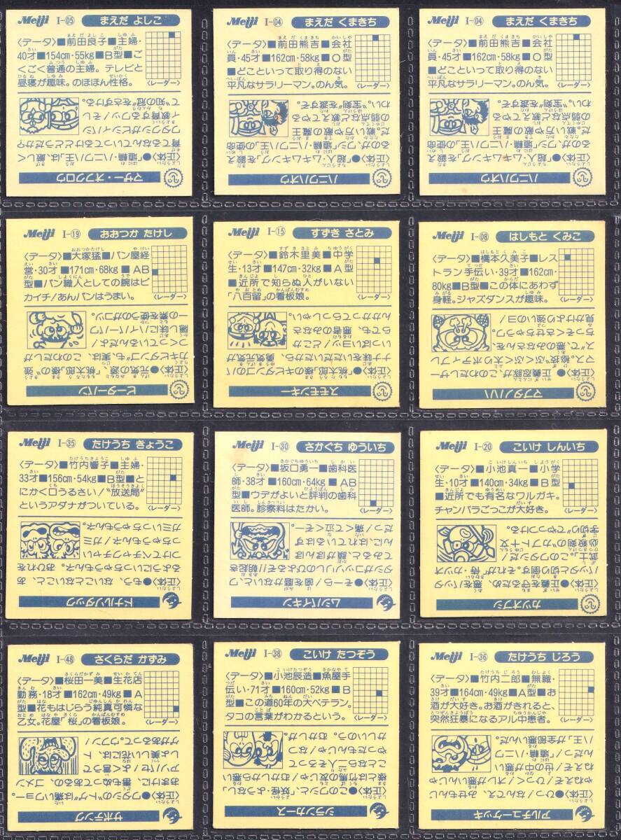 Meiji 明治●快怪魔界●シール●12枚セット●前田明くん家の お父さん●お母さん●橋本くん家の お母さん他マイナーシール●ビックリマン