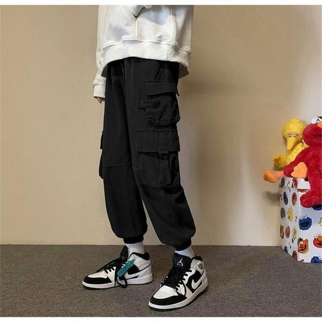 カーゴパンツ メンズ ミリタリー カラーパンツ チノパン カーゴ ミリタリーパンツ 運動用 無地 ブラック XL