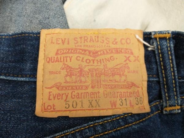 ウエスト39cm股下83cm 左膝部分汚れ有 右足裾部分穴開き有り 後ろ側部分生地スレ有り |