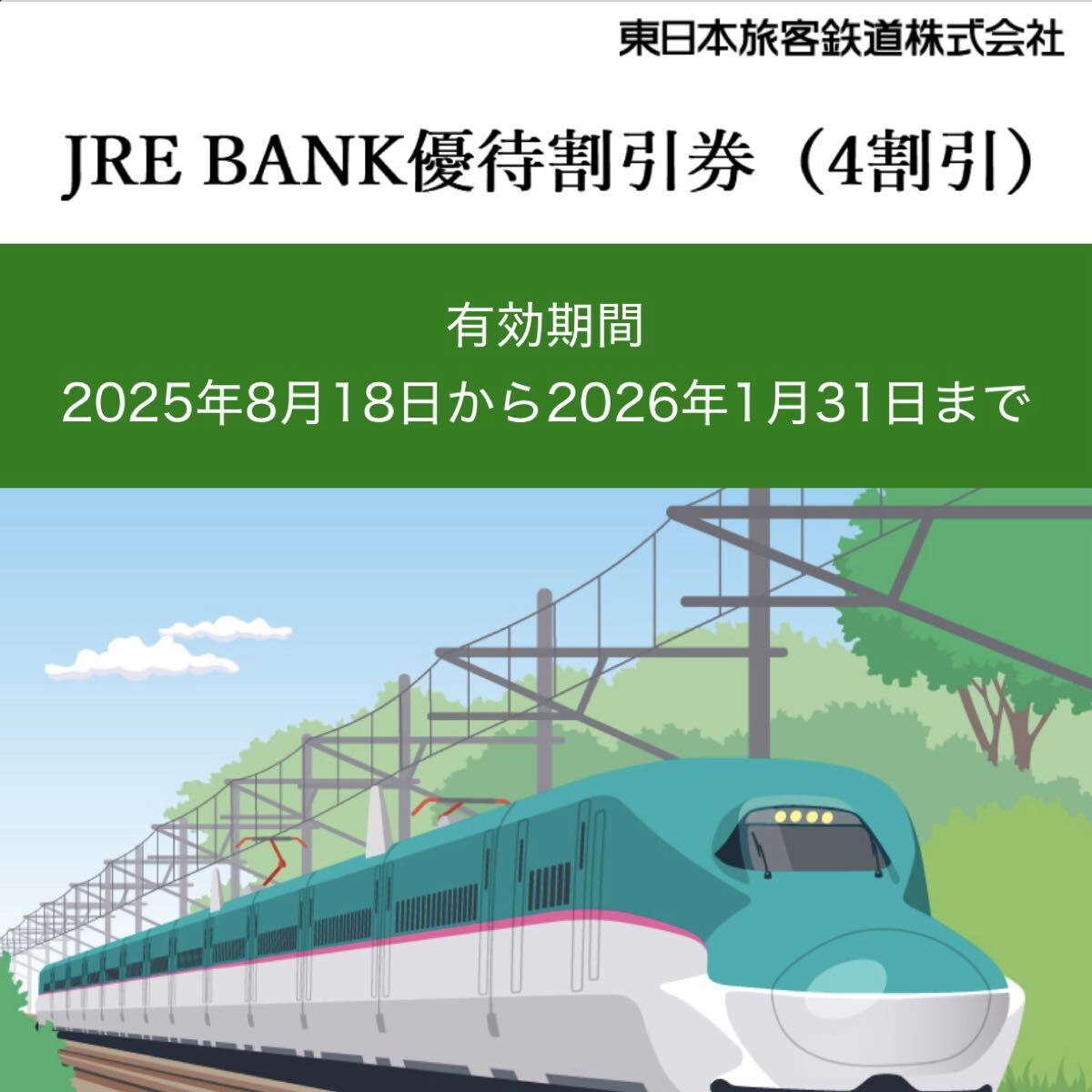 ご利用方法の詳細については、えきねっとウェブサイトの「株主/JRE BANK優待割引券をご利用の場合」をご確認ください。