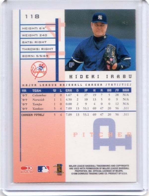 | ★☆伊良部秀輝 カード Vol.10 1998DONRUSS LEAF ROOKIES & STARS #118☆★ | |