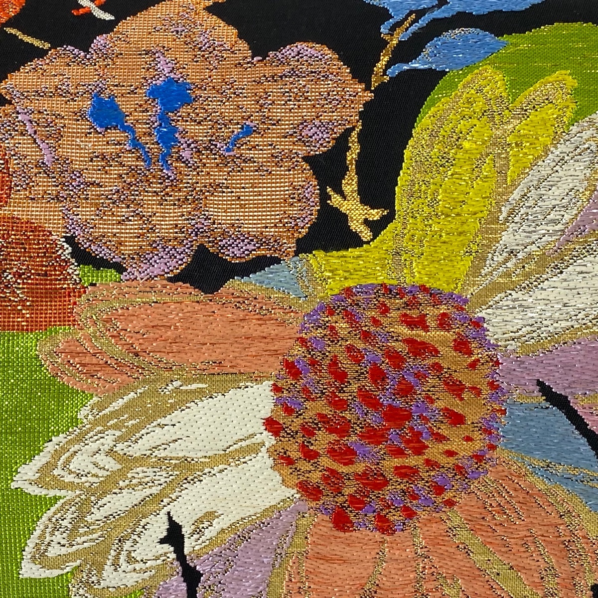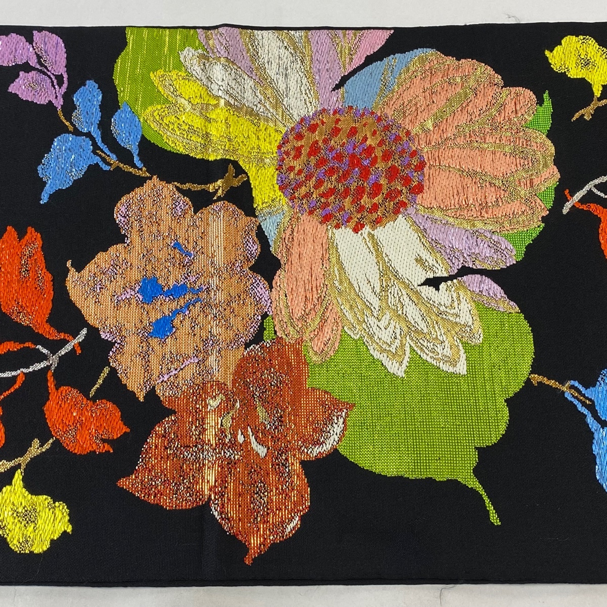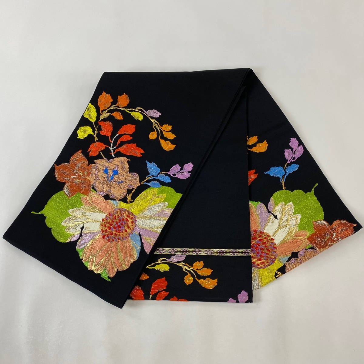 | 袋帯 逸品 龍村平蔵 落款 草花 箔 金糸 黒 お太鼓柄 正絹 【中古】 |