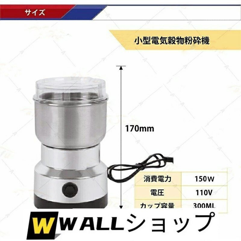 電動製粉機 電動ミル グラインダー300mL大容量 穀物粉砕機 150W高出力 ステンレス鋼材質 お手入れ簡単 ナッツ/豆/香辛料/スパイス