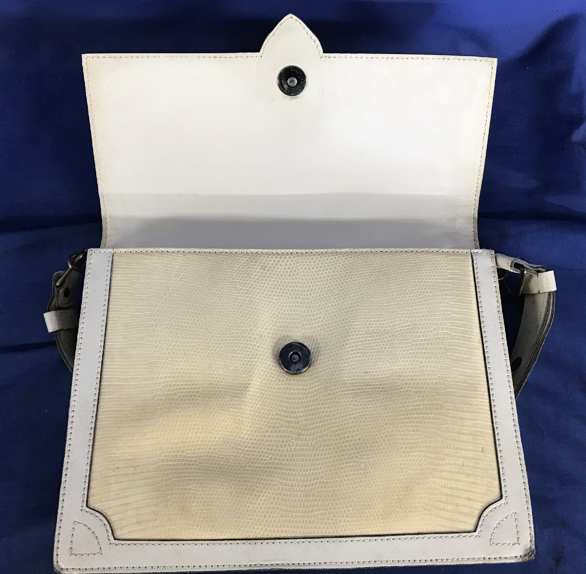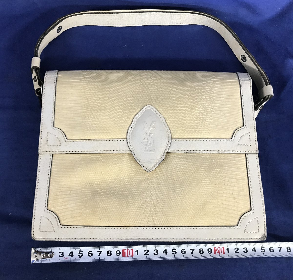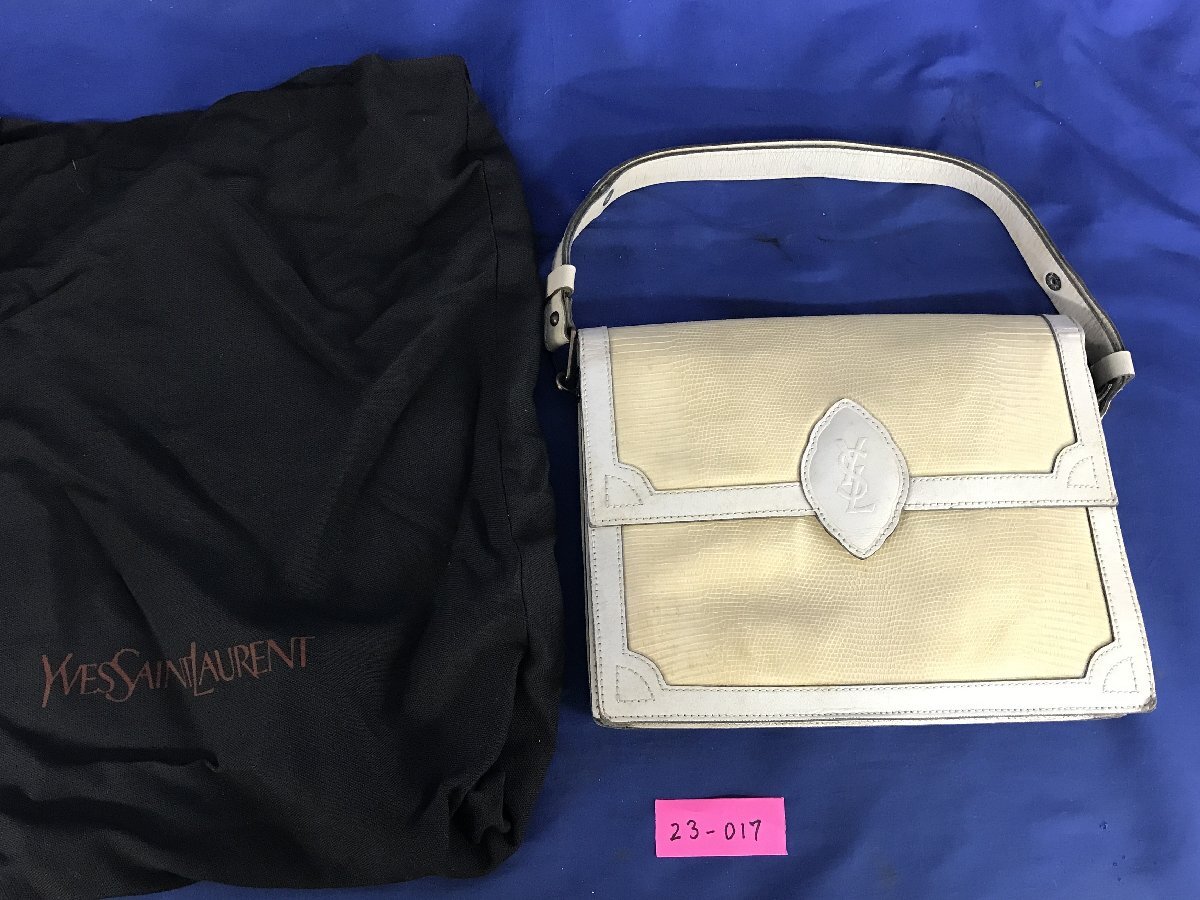 ●★23―017★バッグ イヴサンローラン レザー  ショルダーバッグ ベージュ ホワイト/肩掛け 鞄 カバン レディース ビンテージ[80]