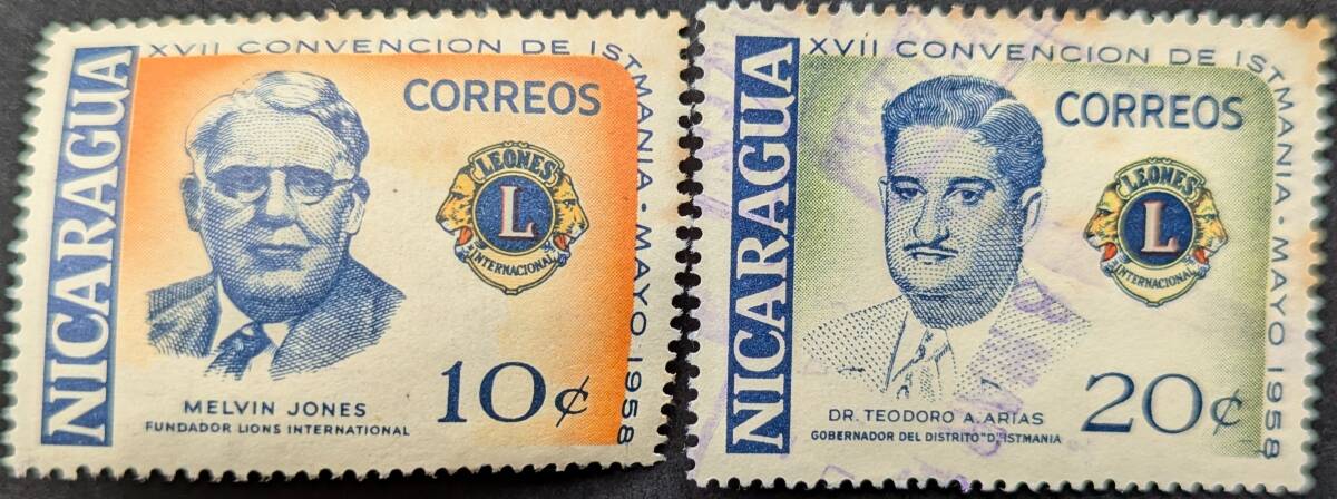 【外国切手】 ニカラグア 1958年05月08日 発行 第17回中米ライオンズクラブ国際協会大会 メルビン・ジョーンズ、クラブ創設者... 消印付き