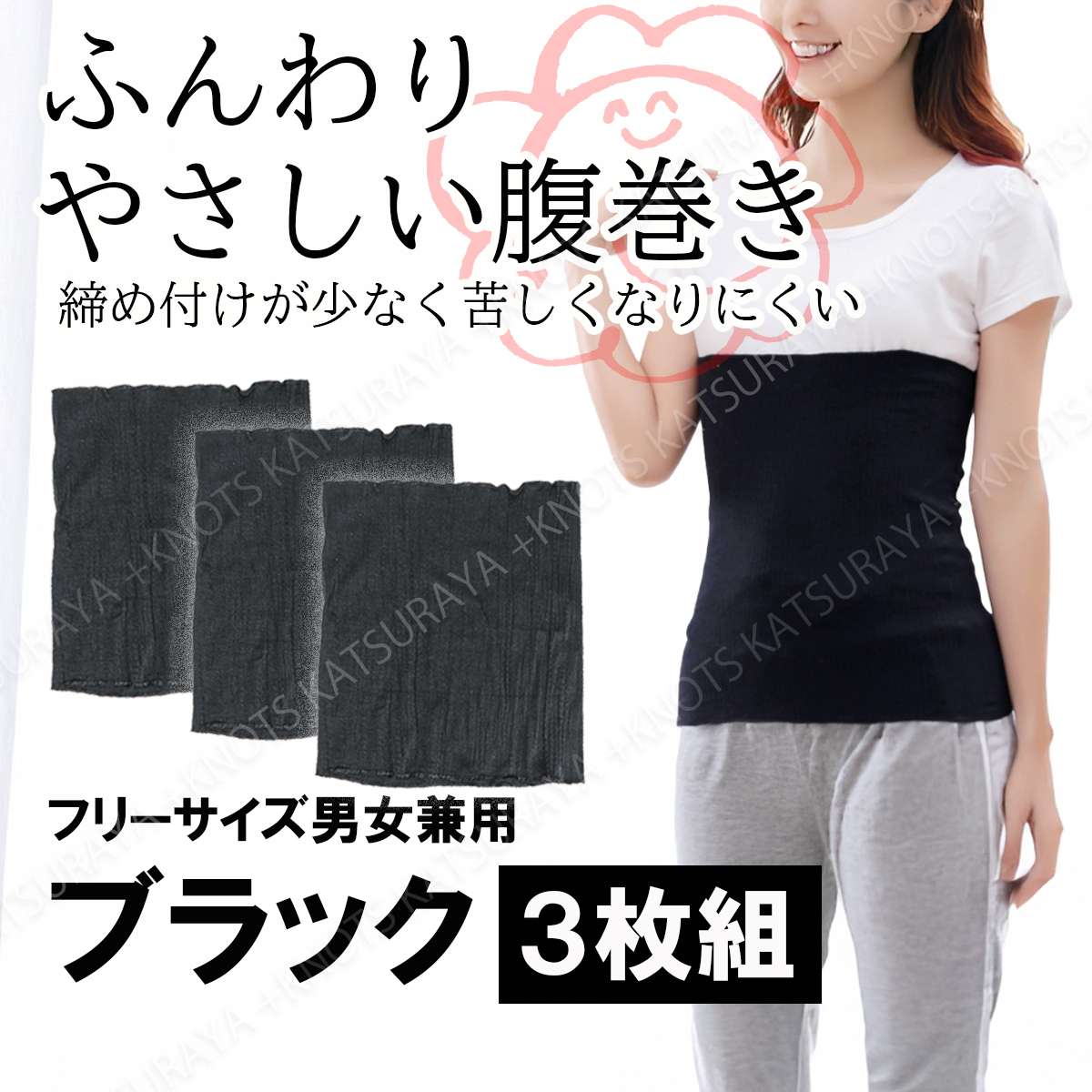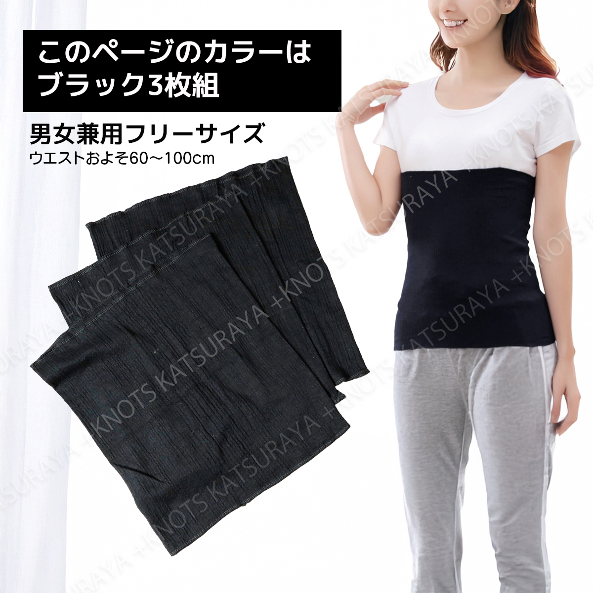 ふんわり優しい腹巻き 3枚組★ブラック黒★大人用腹巻き フリーサイズ レディース腹巻き メンズ腹巻き はらまき 夏用 冬用a121