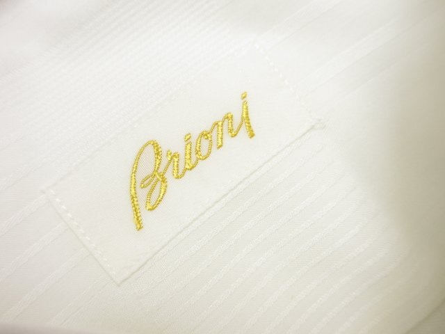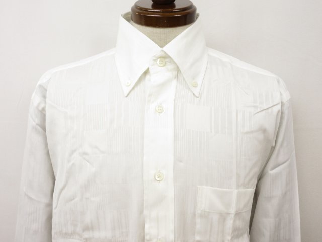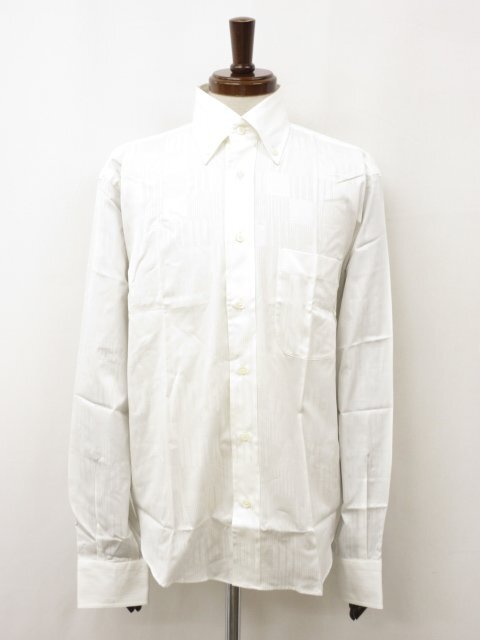 美品【ブリオーニ Brioni】コットン100% 総柄デザイン ボタンダウン 長袖シャツ (メンズ) size3 ホワイト イタリア製 ◇35MK5959◇