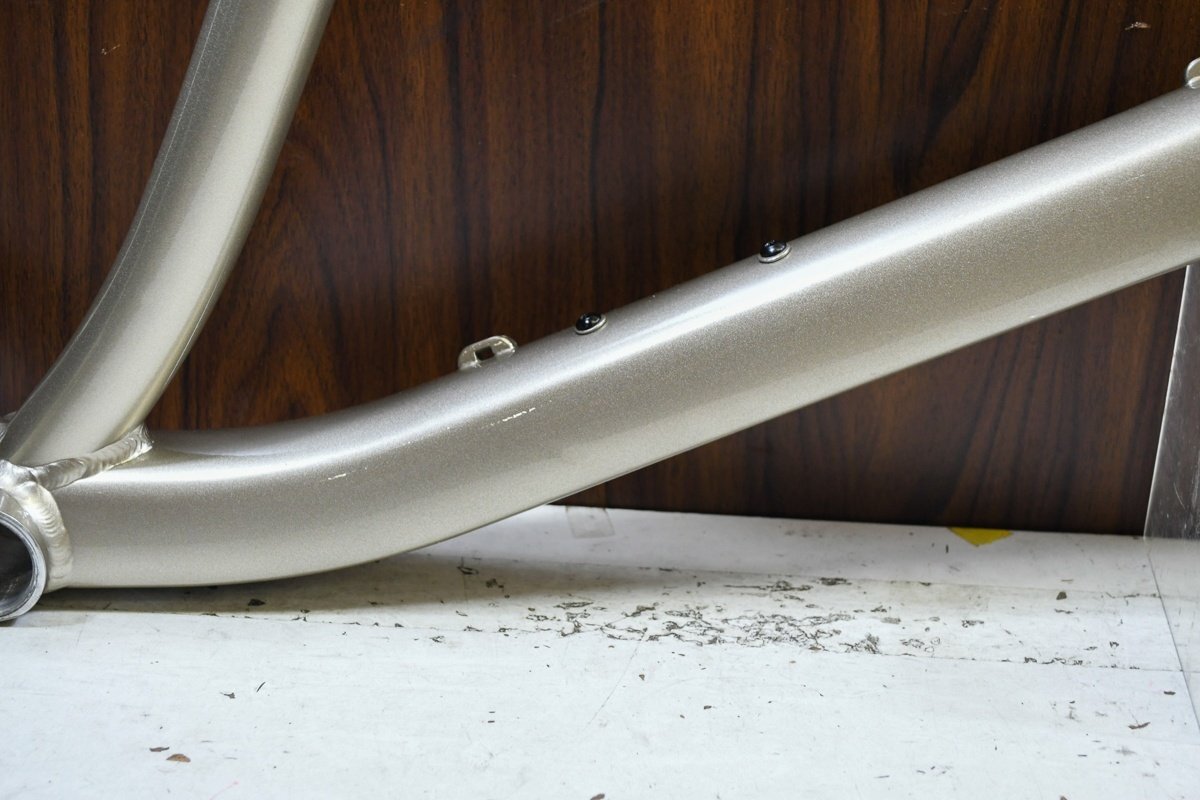 | 仕様 | 年式:2022 フレーム:アルミ フォーク:なし BB:BSA 73mm FDマウント:なし シートポスト:31.6mm OLD:148x12mm thru axle ヘッドチューブアッパー 44mm ロワー 55.95mm サイズ:S トップチューブ長(C-C):580mm ※ホリゾンタル換算値 シートチューブ長(C-T):385mm ヘッドチューブ長:100mm 適応身長:158cm~168cm 程度 実測重量(フレーム):2,280g ※掲載画像状態 |