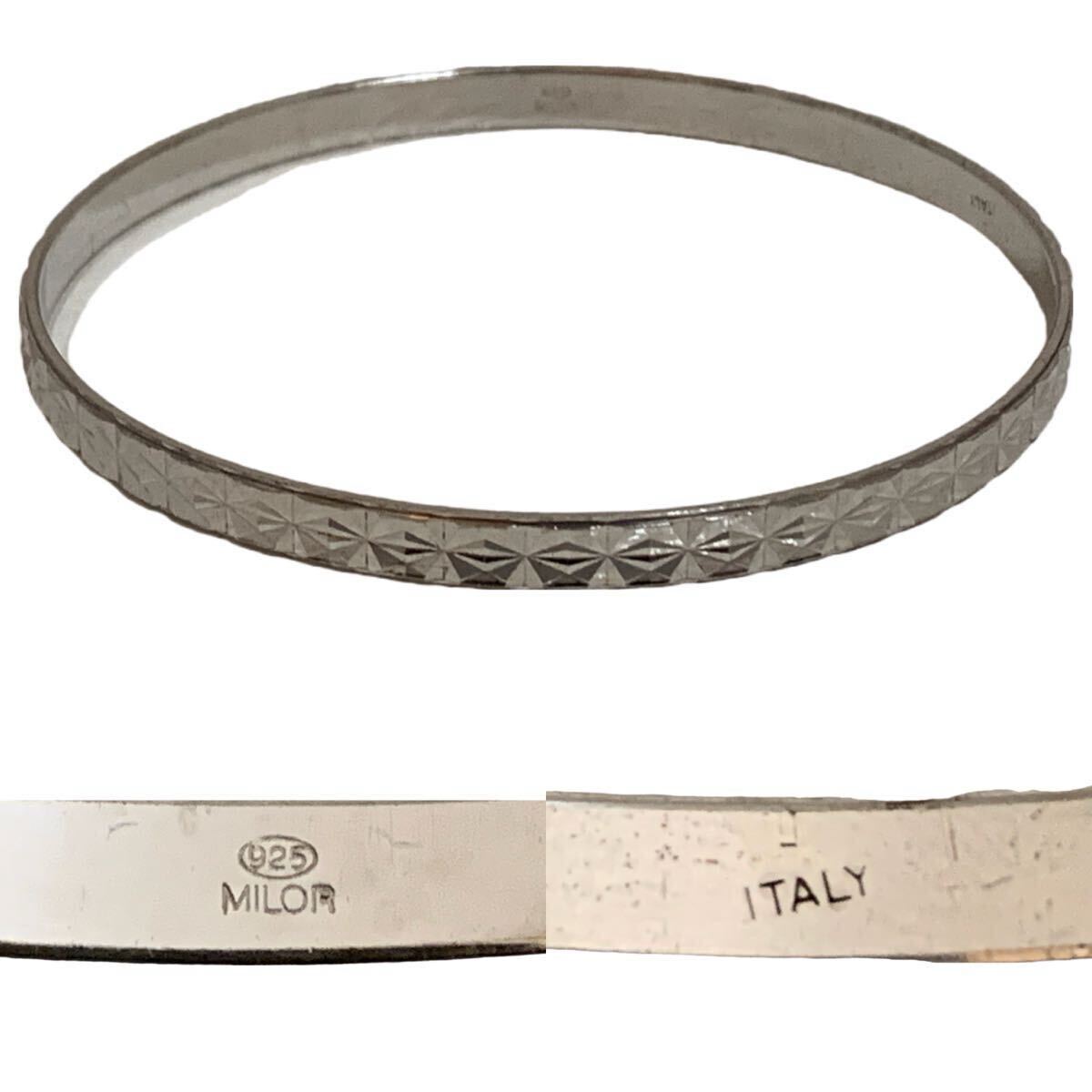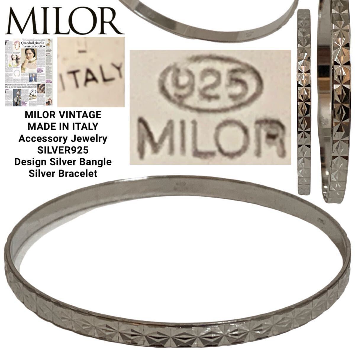 【MEMO】MILOR VINTAGE ミラー ヴィンテージ MADE IN ITALY イタリア製 アクセサリー ダイヤカット デザイン カッティングデザイン シルバーバングル ブレスレット 925刻印 アーカイブです。シンプルなデザインで細かなディテールやシルエットが綺麗です。素材並びにシルエット、デザインも洗練されたデザインですので、末永くお使い頂けます。アーカイブ 送料込み