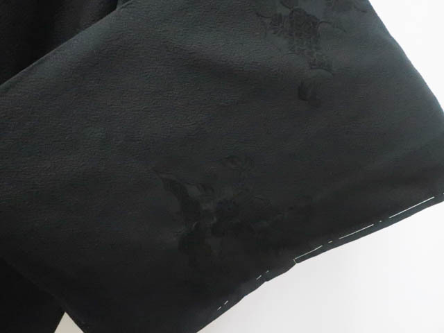 リサイクル商品のため、羽裏にしみ汚れがございますが着用可能なお品です。 地色は 黒です。 1枚目の画像が近いお色かと思われます。 素材は正絹です。  |