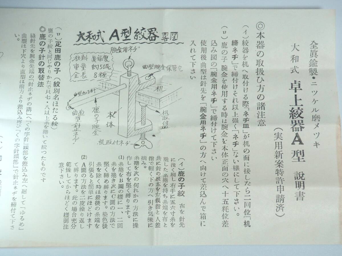 ★【大和式 卓上絞器】大和色染研究所 箱・説明書付 鹿の子絞 疋田鹿の子絞 鳥の子絞 柳絞 巻上絞 絞り染め 昭和レトロ アンティーク