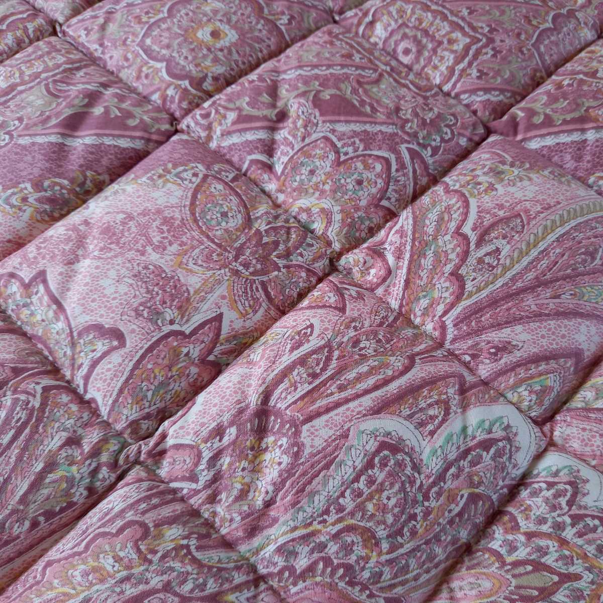 中わたは東洋紡 岩国工場で生産した極細ポリエステル繊維 シュレープを100%を使用しておりますので、羽毛のような保温性を実現し ほこりなどが少なく、体を包み込むようなドレープ性に優れております。