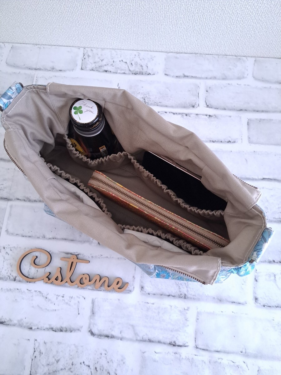 口部分はファスナーを付けバッグの中が見えにくくしました。