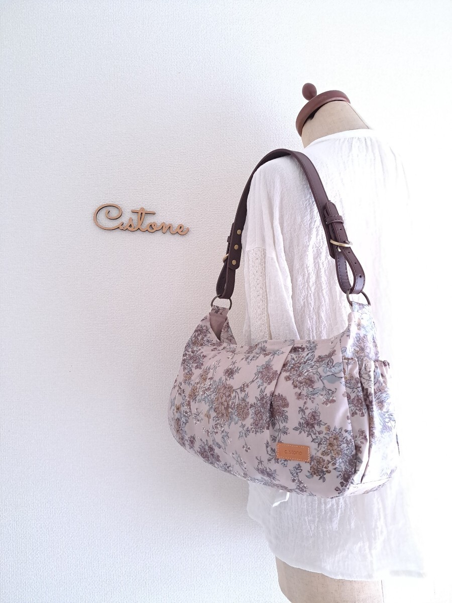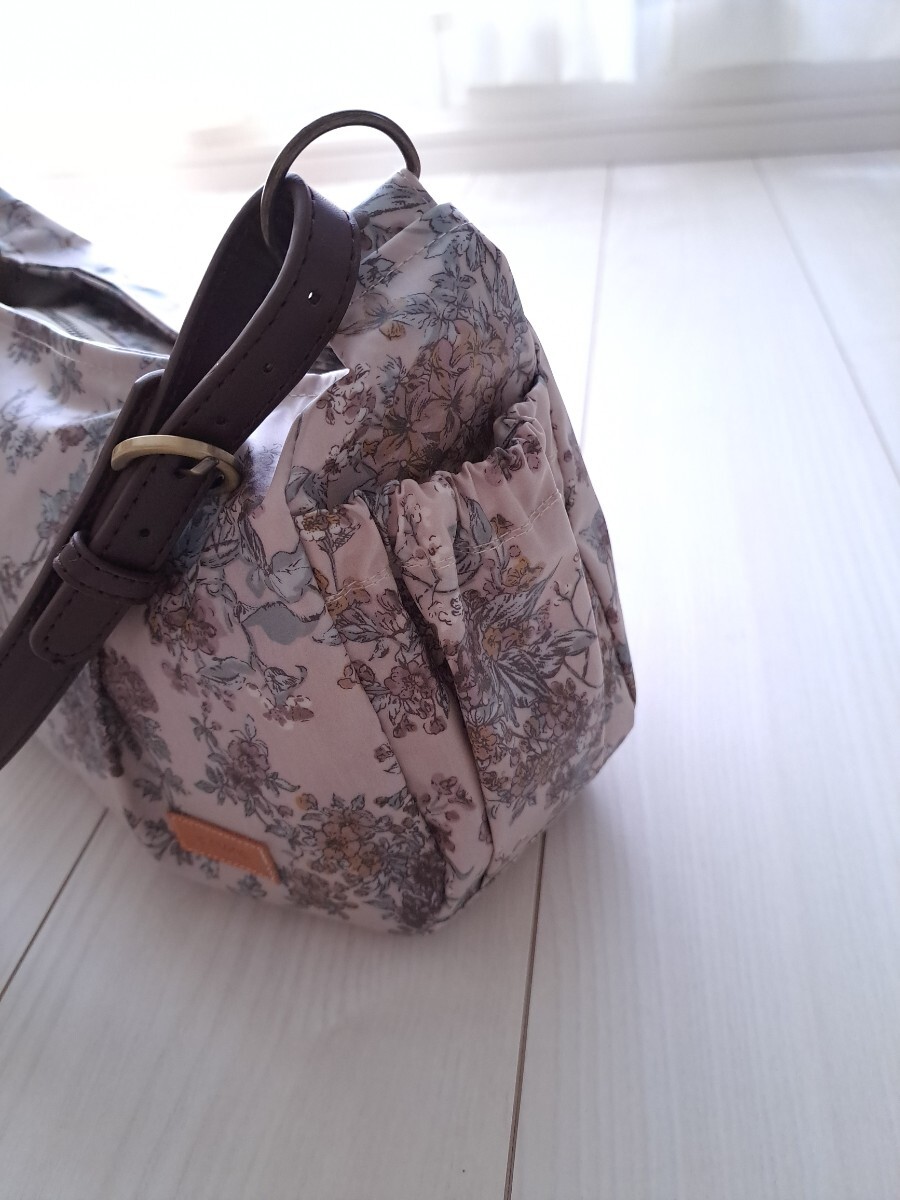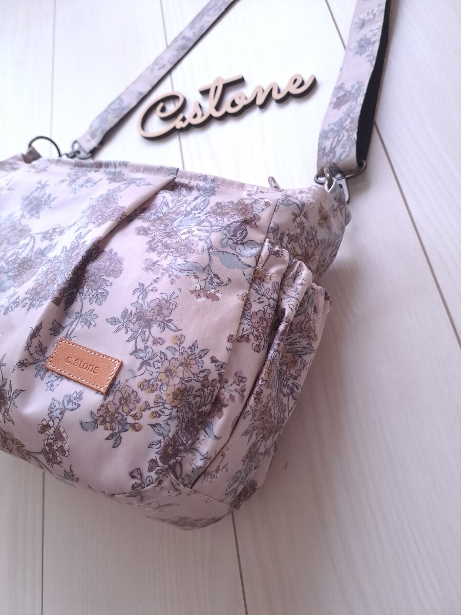3㎝幅共布ショルダー紐付 リバティ セリーヌ ウォールナッツ 横長ワンハンドルバッグ ハンドメイド ラミネート 持ち手別売り