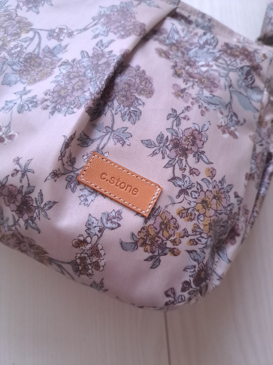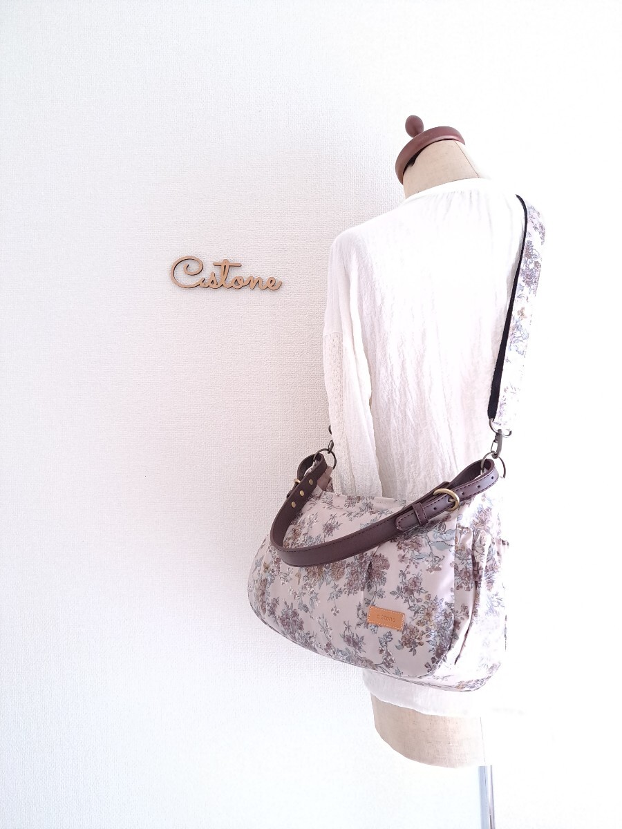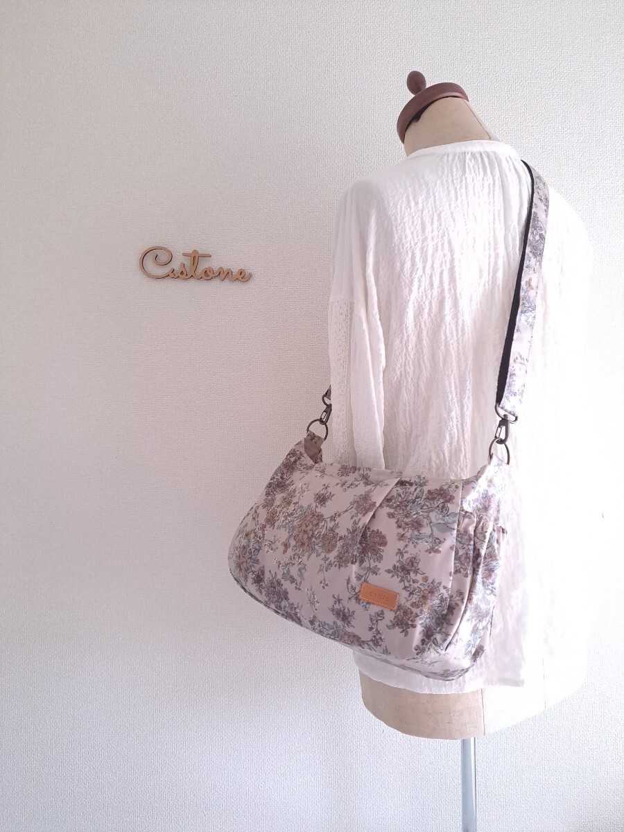 3㎝幅共布ショルダー紐付 リバティ セリーヌ ウォールナッツ 横長ワンハンドルバッグ ハンドメイド ラミネート 持ち手別売り
