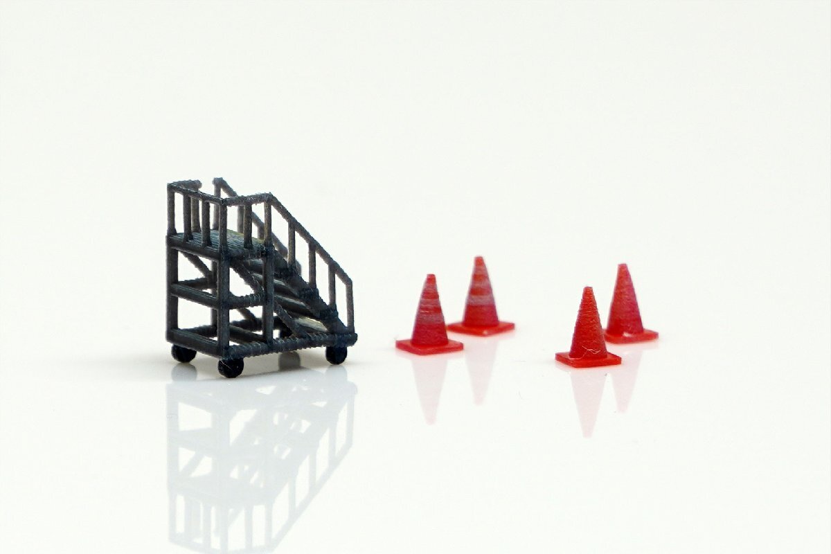 箱庭技研オリジナルフィギュアセットです。1/200スケールモデルと合わせてリアルなジオラマシーンを再現することができます。彩色済みのためすぐに飾ることができ、手軽に楽しんでいただけます。■内容:ステップx1、カラーコーンx4※航空機、フィギュアは撮影サンプルです。商品に含まれません。・飾り棚や机の上に置く場合は、転落に注意してください。接着剤での固定をお勧めします。・商品に過度な力を加えないでください。【重要】ご利用される前のご注意点1.ビニール袋を開封する前に、内部の製品に破損や不良が無いかご確認ください。開封後では交換対応ができなくなりますので、ご注意ください。2.本製品は3Dプリンターによる出力品です。製造上積層痕の発生は避けられませんので、予めご了承ください。3.スケールの小さな製品は非常に壊れやすいです。破損した場合は、少量の接着剤などで補修してご使用下さい。同時に落札いただいた場合は複数商品を同梱で発送可能です。その場合送料は1件分になります。落札後に取引ナビにてまとめて購入手続お願いします。フィギュア商品は在庫ない場合は発送までにお時間いただくことがございます。