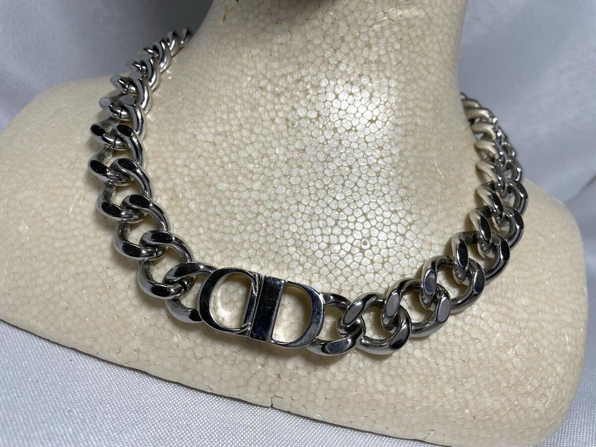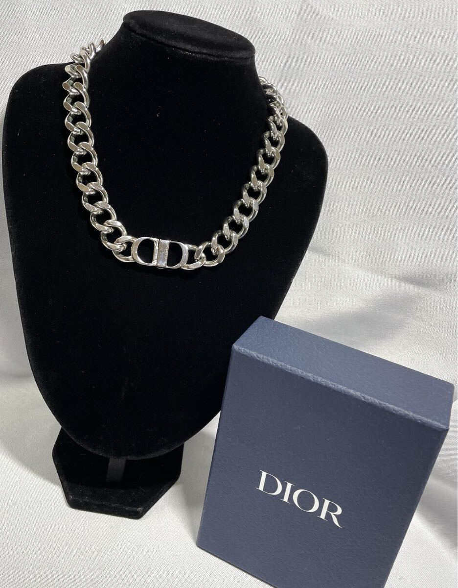 即決 Dior ディオール CD ロゴ アイコン チェーンリンク ネックレス シルバー 箱あり 当日発送可