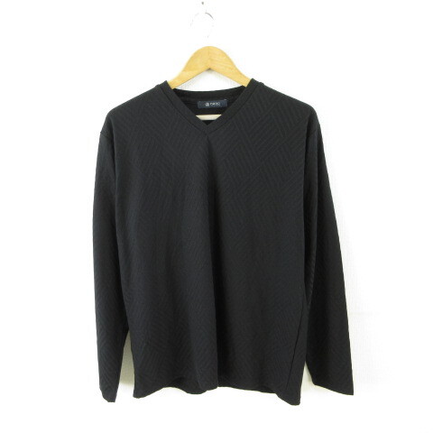 ナノユニバース nano universe カットソー Tシャツ 長袖 Vネック 総柄 黒 XL *T22 メンズ