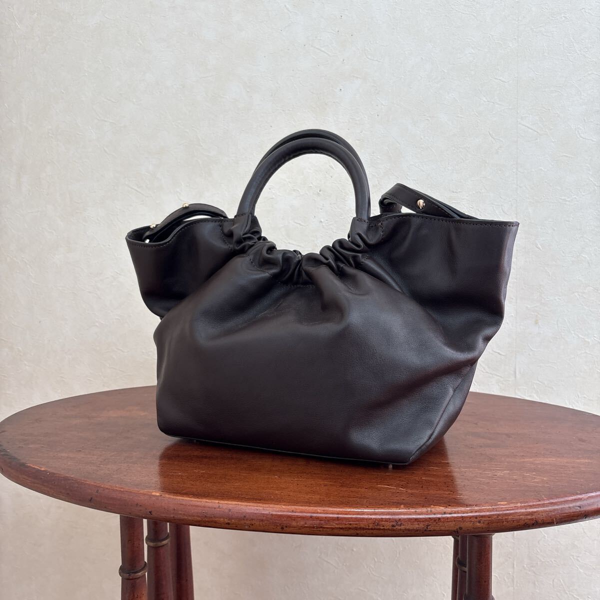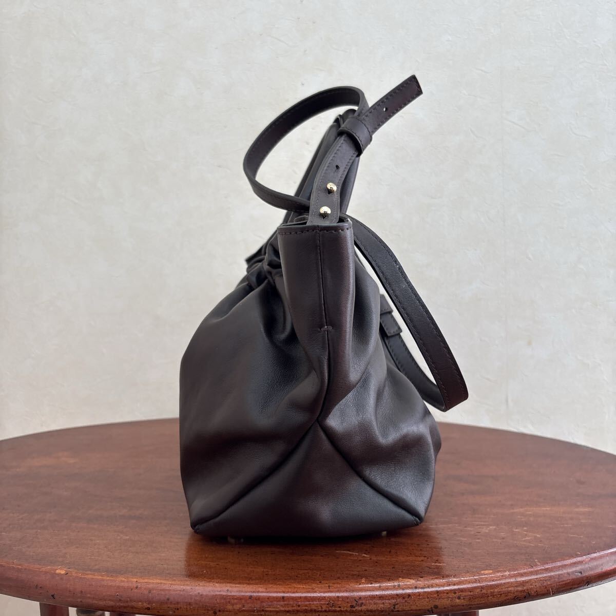 デザイン:プリーツ、ソフトなシャーリングレザーが特徴の大胆ながらもシンプルなデザインです