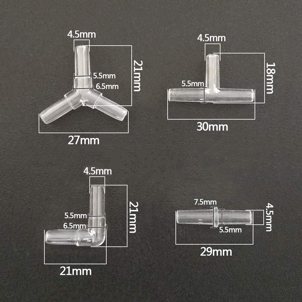 YFFSFDC エアーチューブコネクター 40個入り Y型/T型/L型/I型 水槽用 三又&二又分岐 チューブコネクタ 継手 アクアリウム 水族館 プラスチック製 透明色 4種類