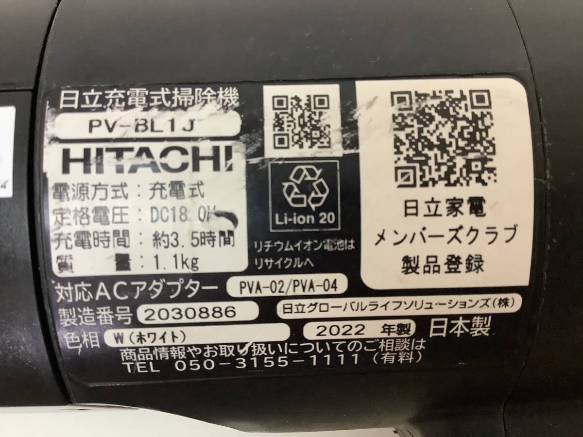 そ-470 ジャンク品 HITACHI PV-BL1J 動作確認・簡易清掃済み 2022年製 コードレスクリーナー 充電式掃除機 日立