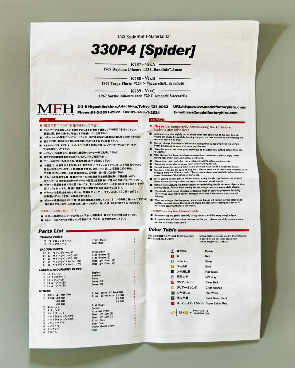 MFH(モデルファクトリーヒロ) 1/43 Scale Multi-Material Kit「Ferrari 330P4 Spider Ver.C(フェラーリ 330P4 スパイダー Ver.C)」となります。
