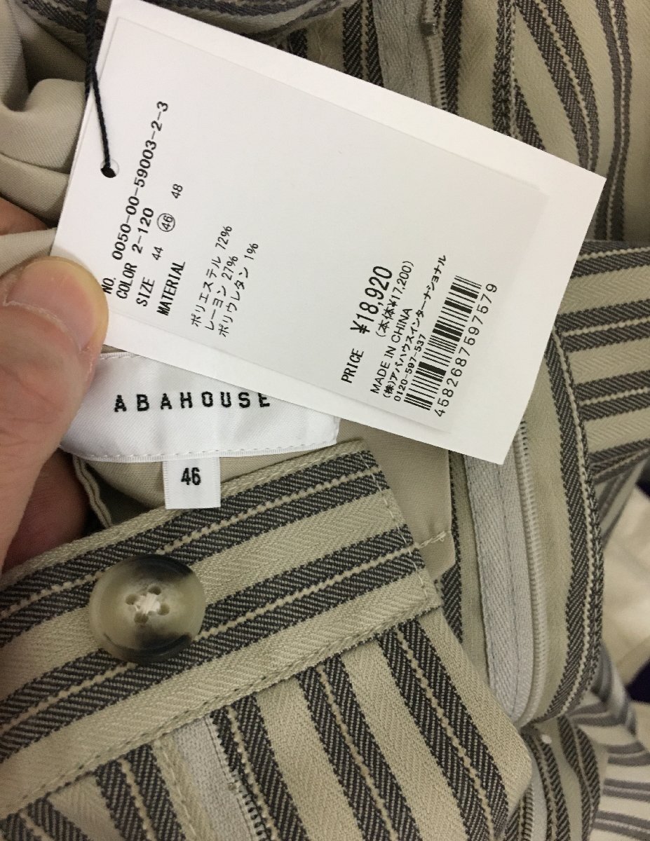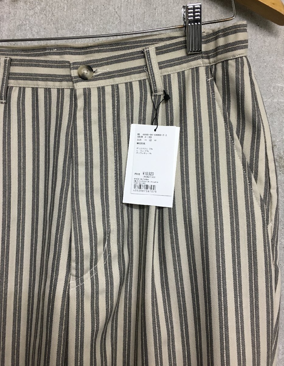 ◆ABAHOUSE アバハウス 25ss 新品タグ付き 清涼 リネンライク ストライプ リラックスパンツ / ワイドパンツパンツ 18920円 サイズ46