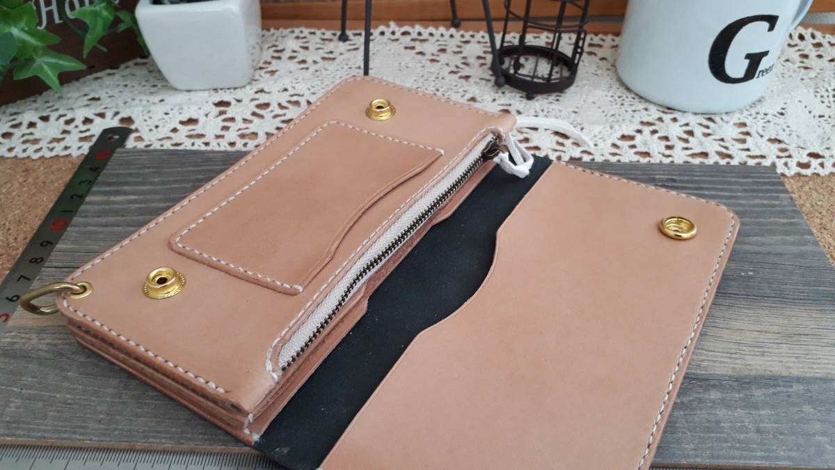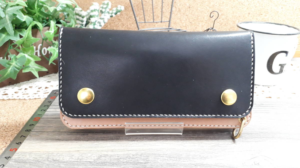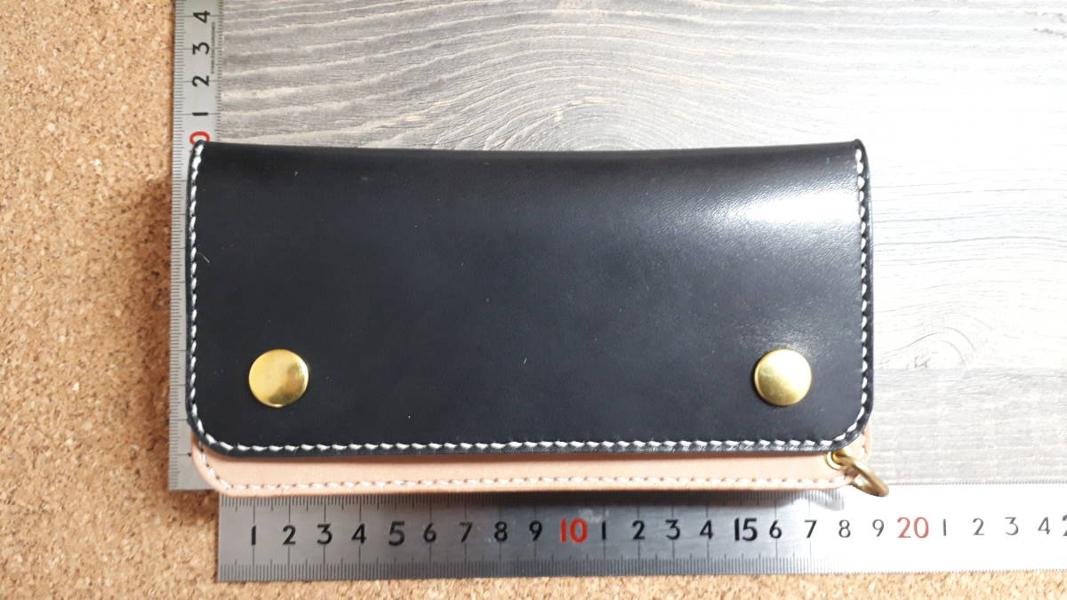 送料込)トラッカーウォレットMIX(21)栃木サドル牛革 黒&ナチュラル/ハンドメイドレザー