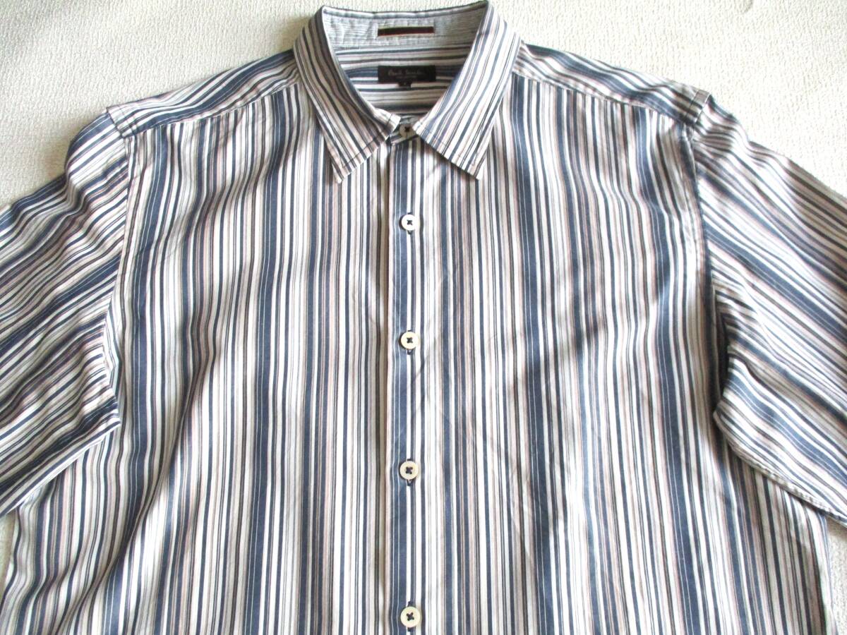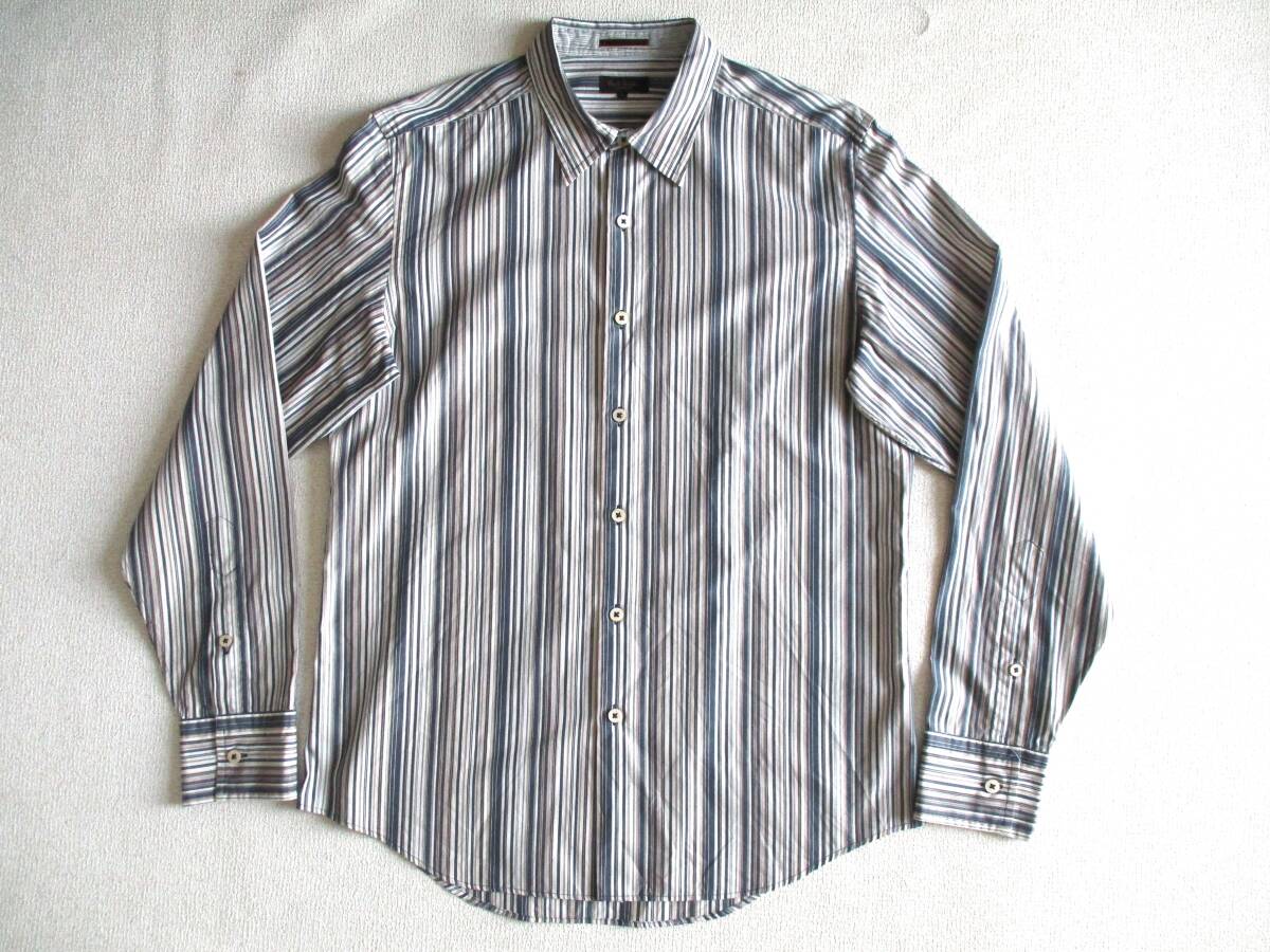グレー×ベージュ×ホワイト★ L ポールスミス★ 長袖ストライプシャツ★ 日本製