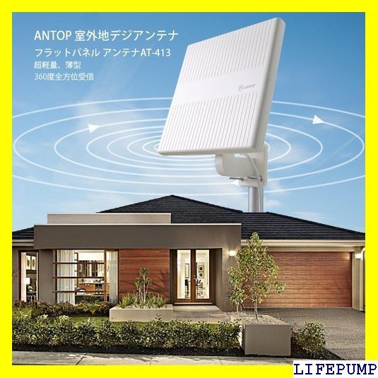 ANTOP 地デジ 屋外テレビアンテナ 室外HD TV 簡易設置 超軽量 フラットパネル アンテナAT-413 890
