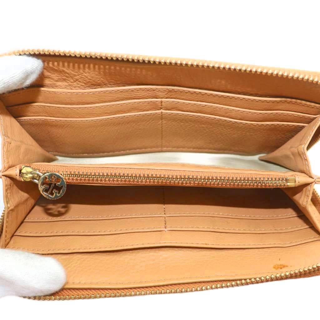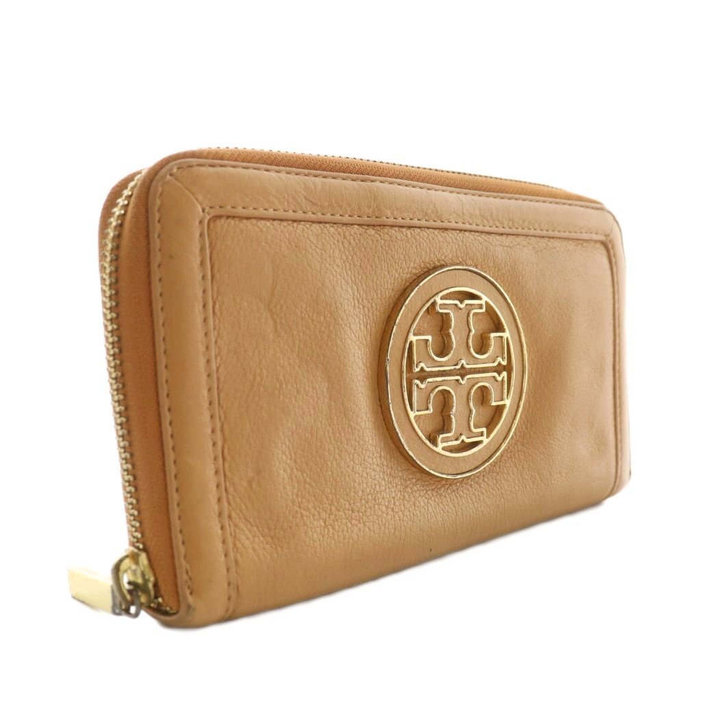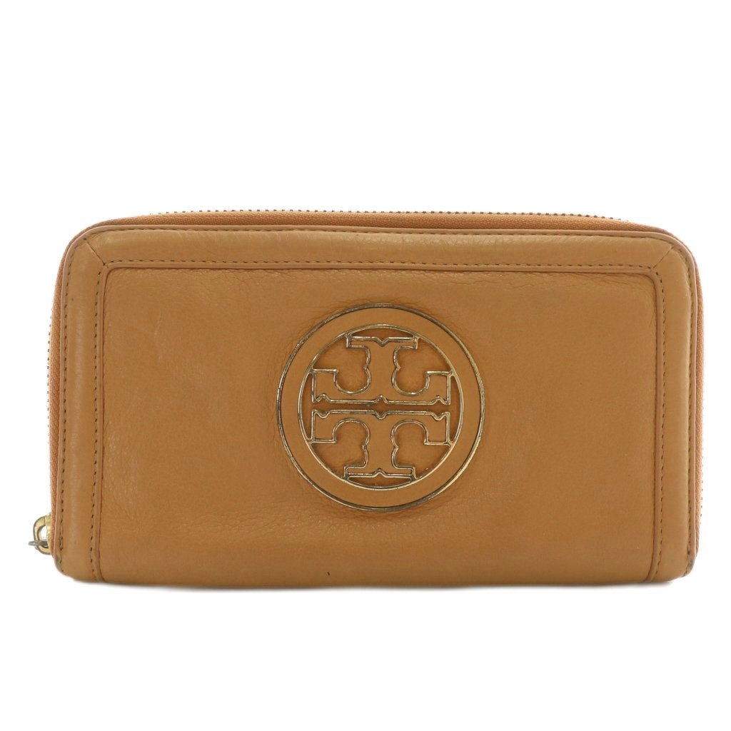 トリーバーチ TORY BURCH 長財布 レザー ラウンドファスナー ロゴ ゴールド金具 茶色 ブラウン /XZ ■GY18 レディース