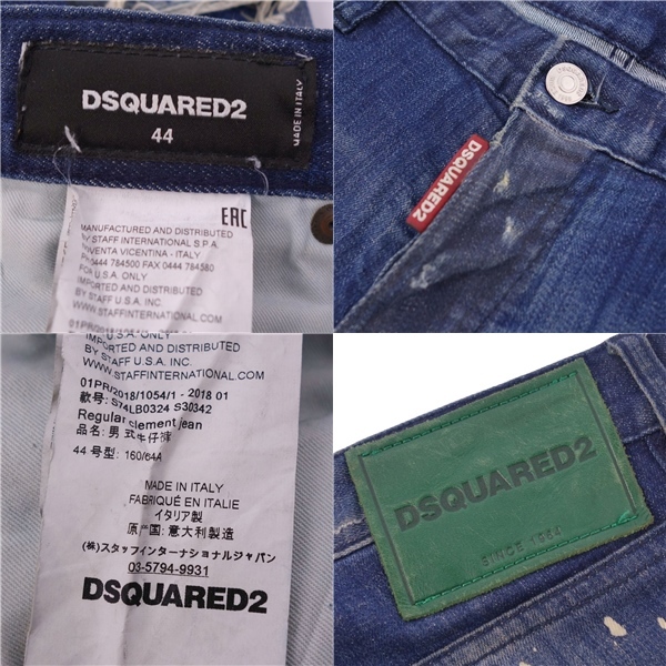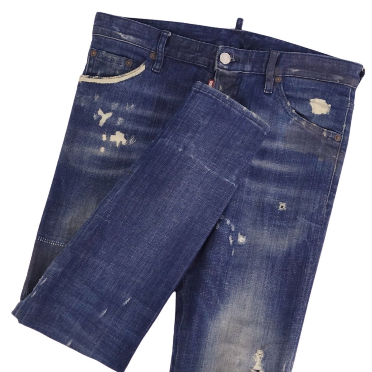 | 美品 ディースクエアード DSQUARED2 パンツ 2018 デニムパンツ ダメージ加工 コットン メンズ 44 インディゴブルー |