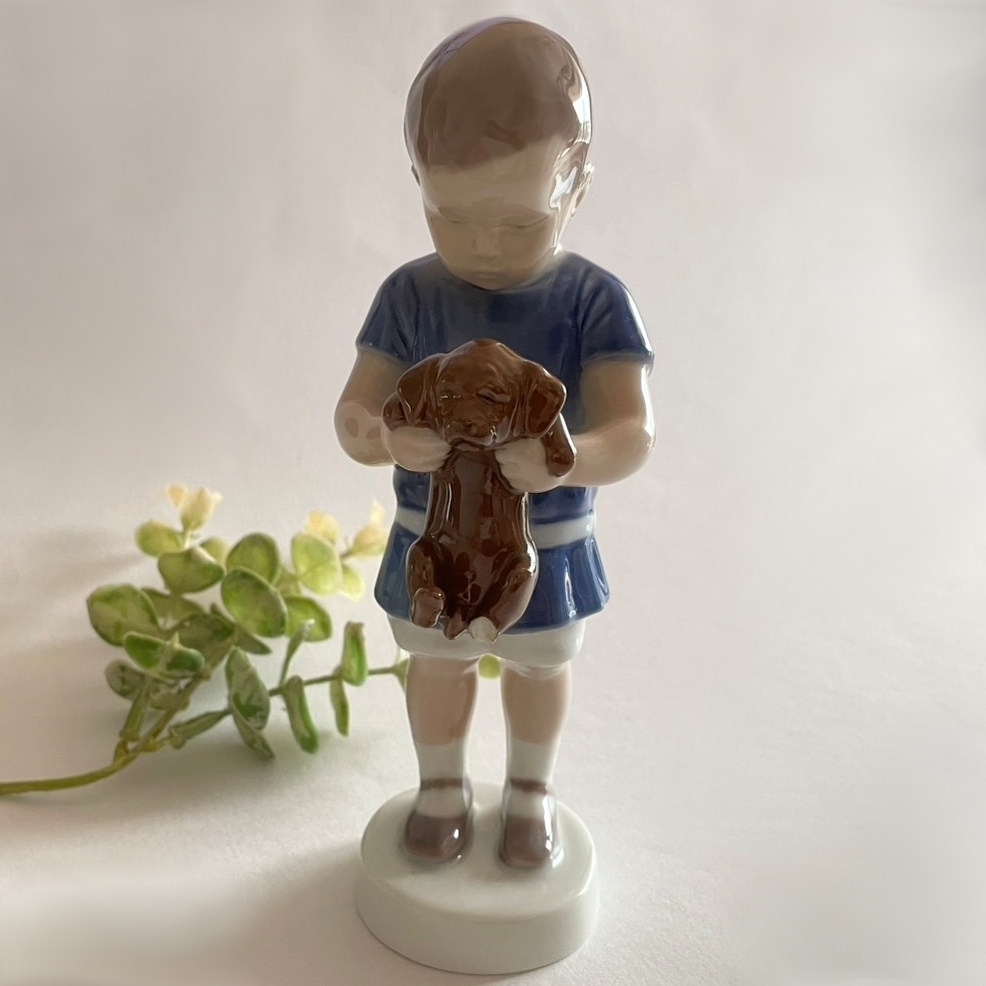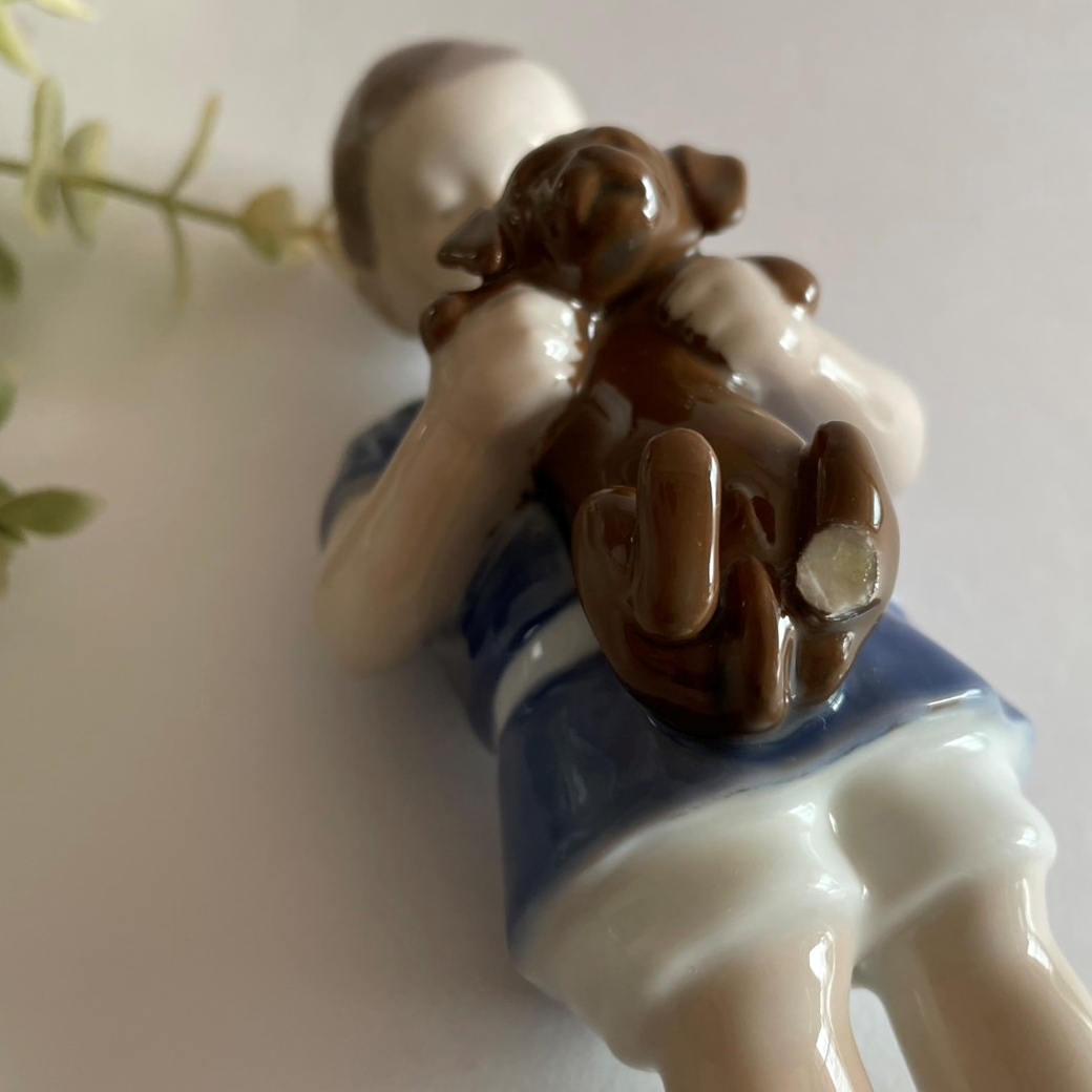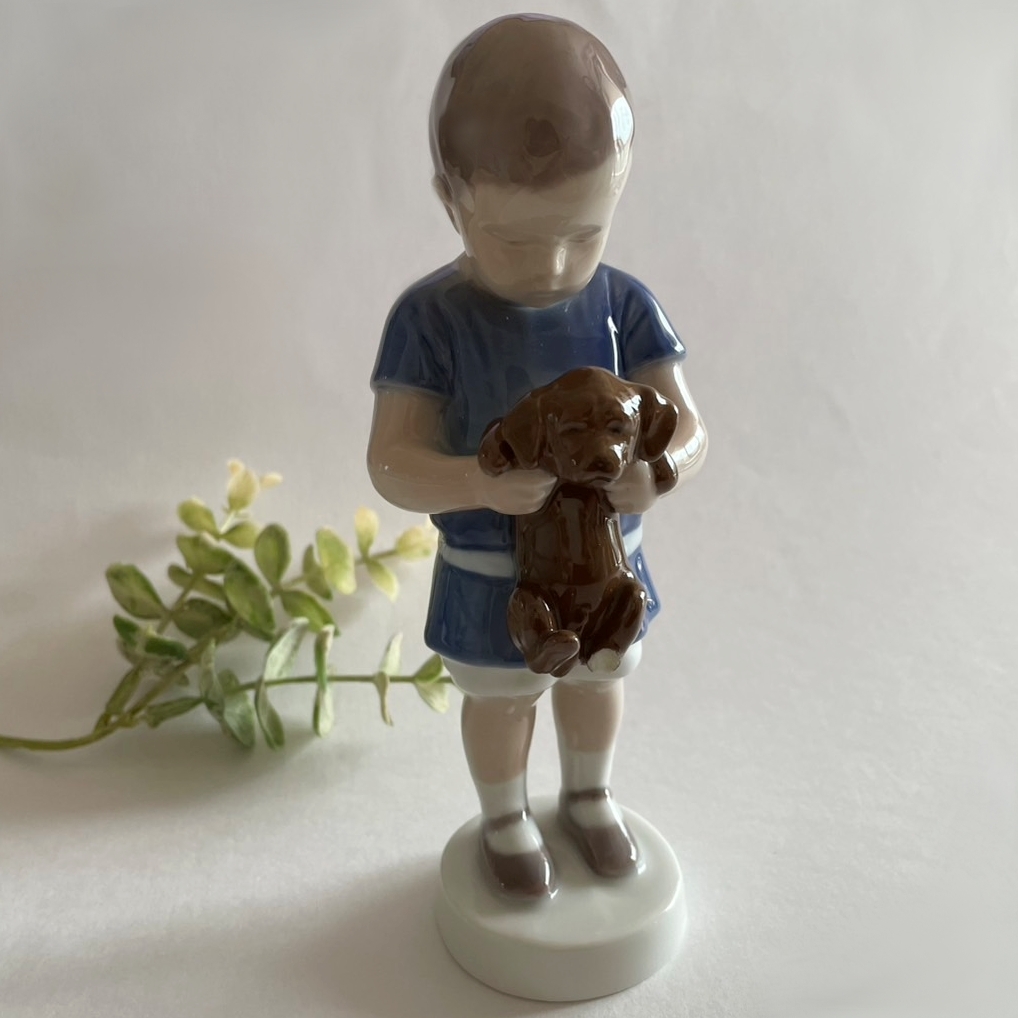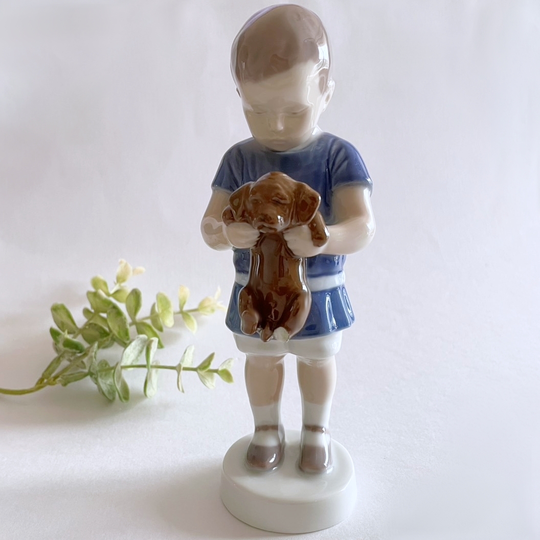 【L1】即決. 欠けあり ビングオーグレンダール 少年 犬 フィギュリン 置物 (検. ロイヤルコペンハーゲン