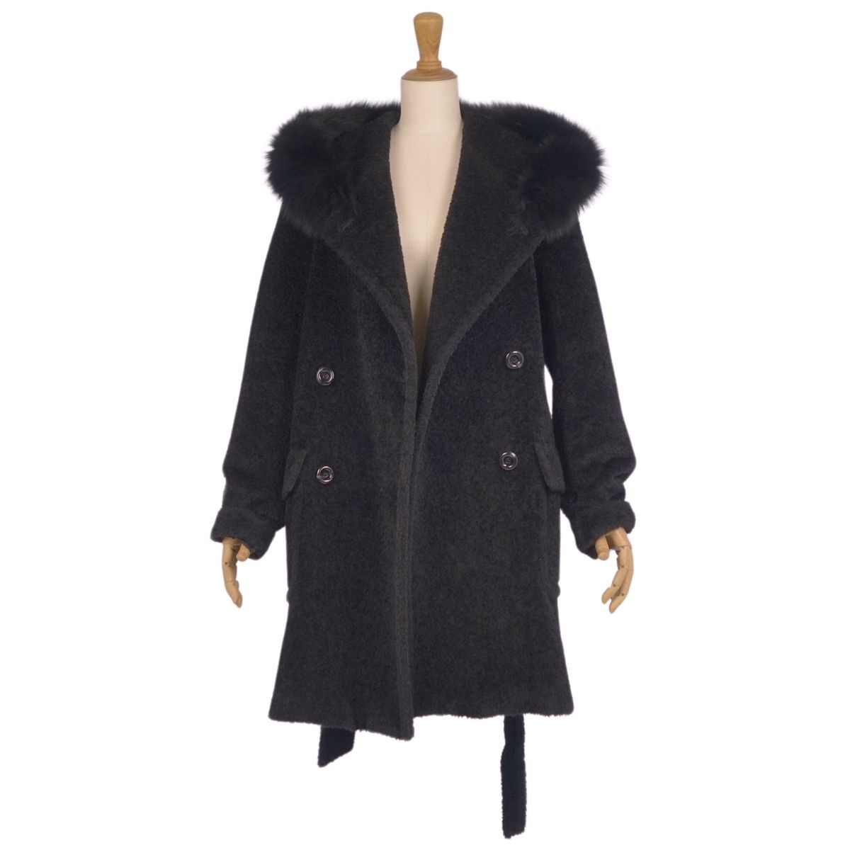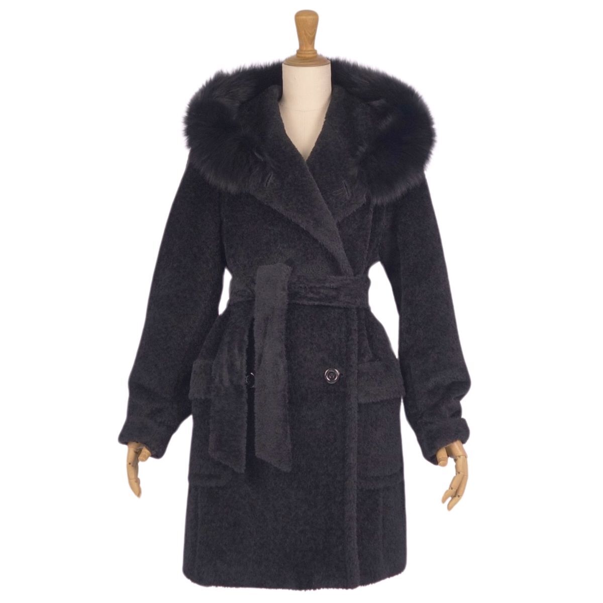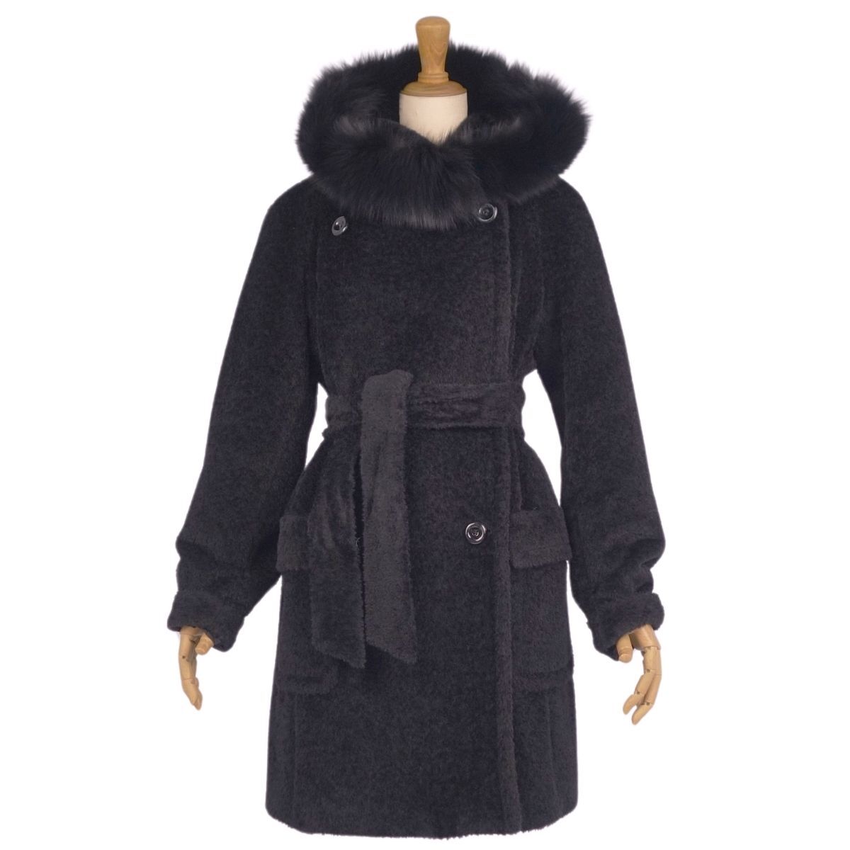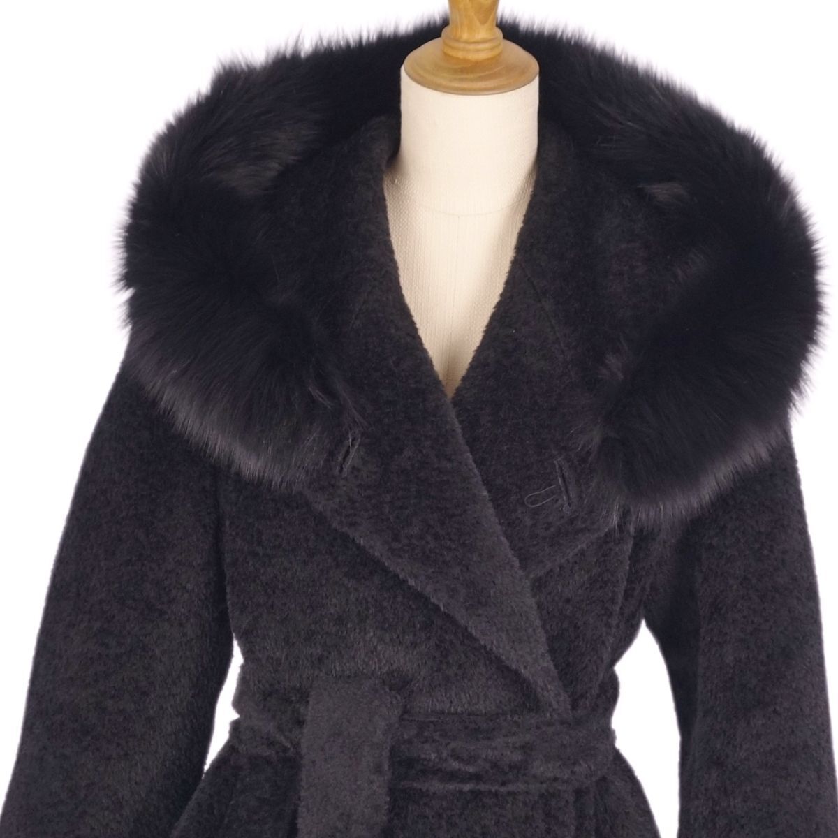 | 美品 マックスマーラ Max Mara STUDIO ロングコート フード付き シャギー アルパカ ウール フォックスファー 42ブラック |