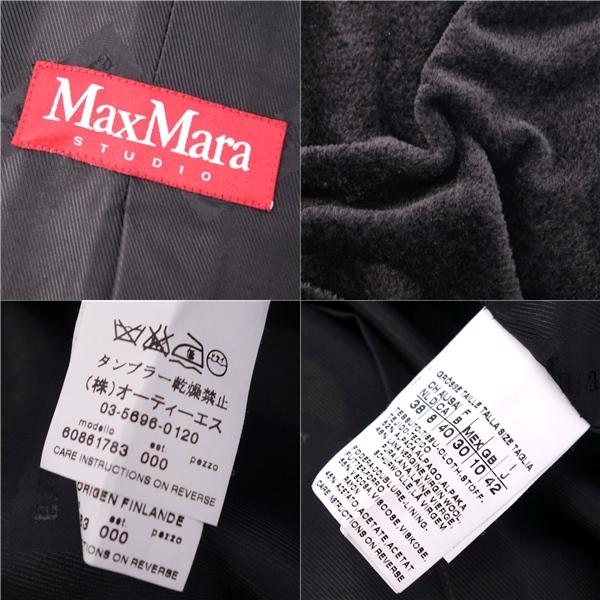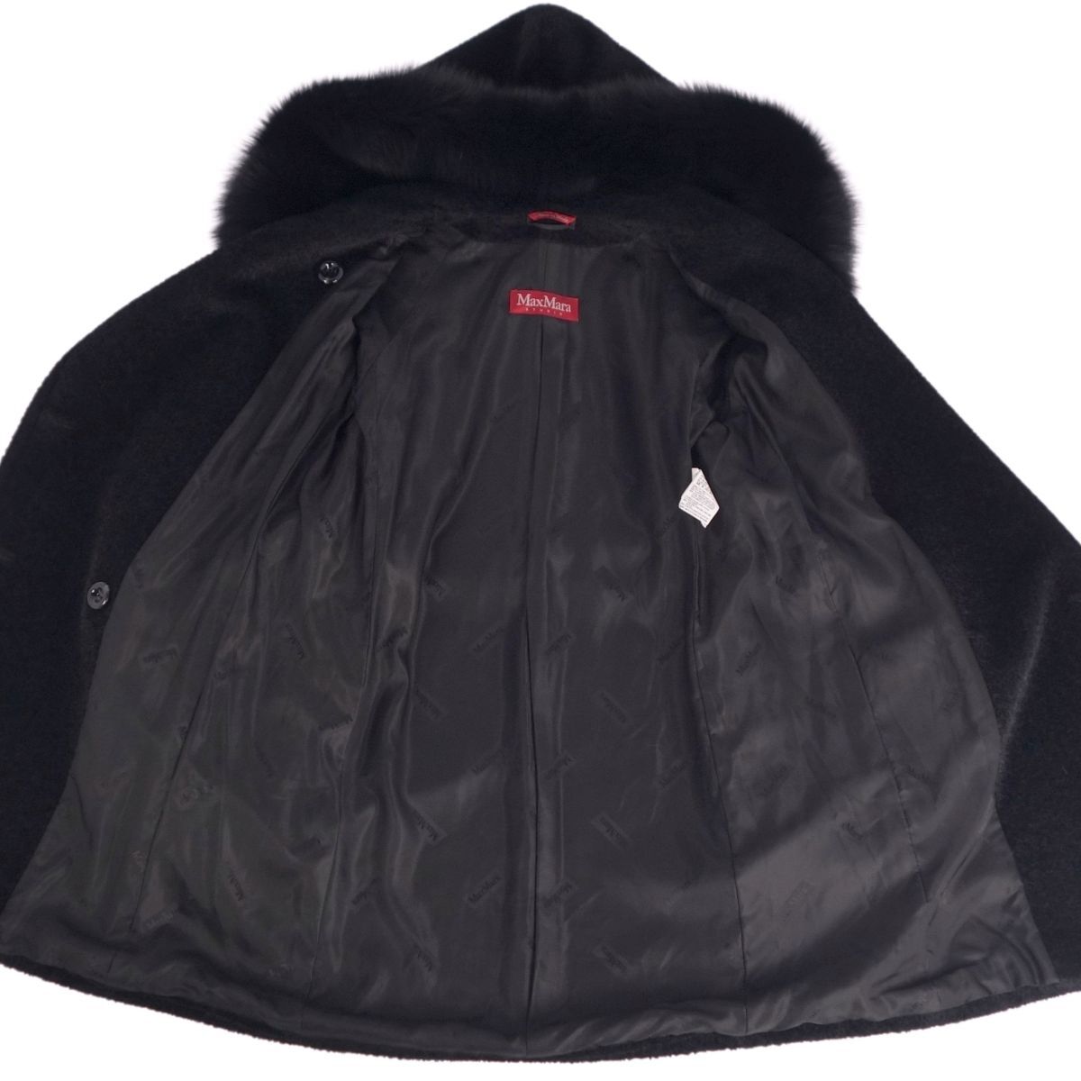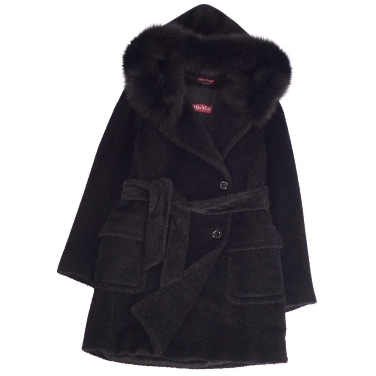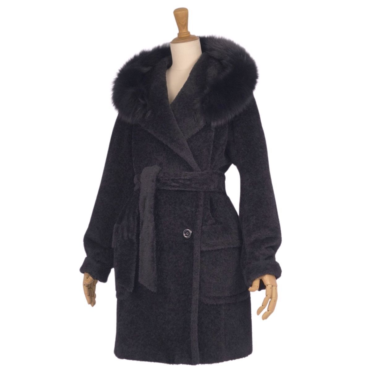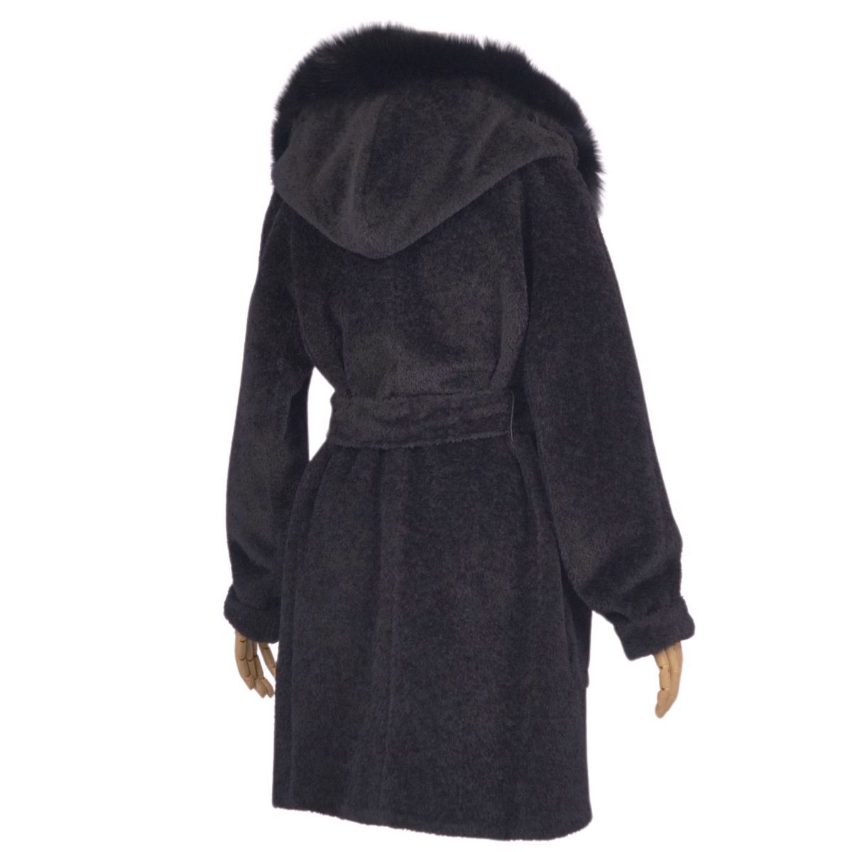| 美品 マックスマーラ Max Mara STUDIO ロングコート フード付き シャギー アルパカ ウール フォックスファー 42ブラック |