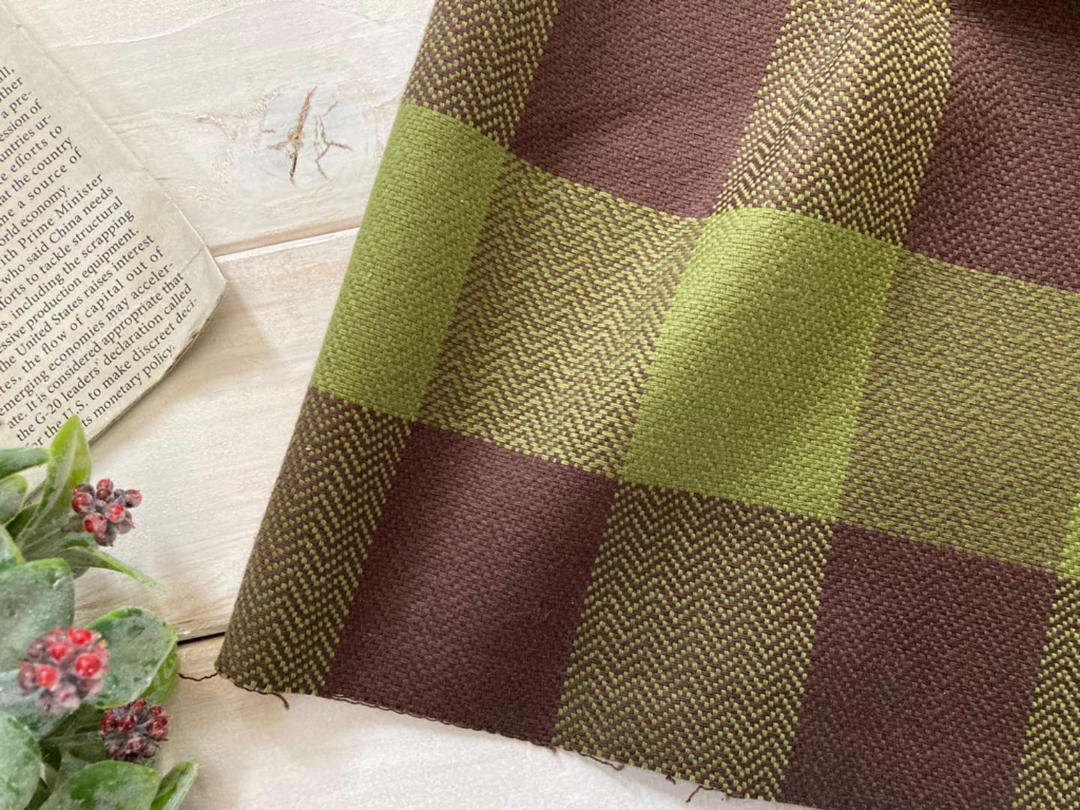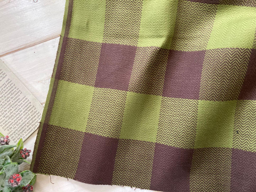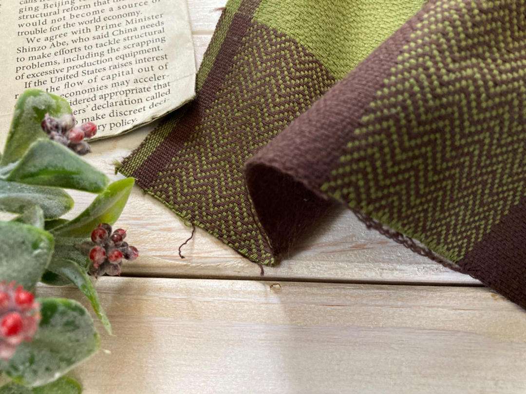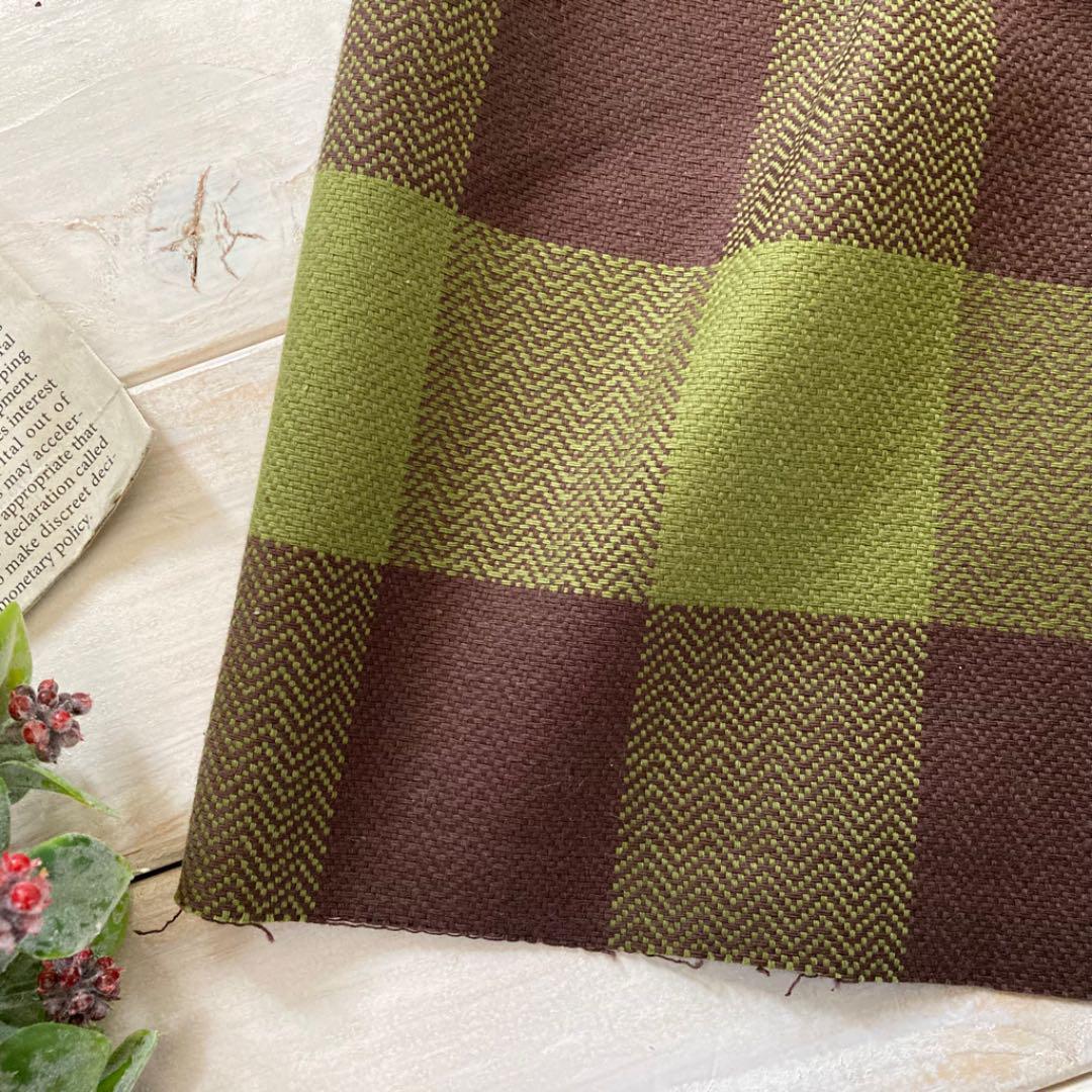 ■0.5m■延長可能■綿100%バッファローチェックへリンボン裏起毛 モスXコゲ茶■