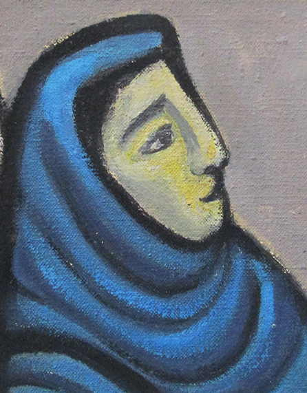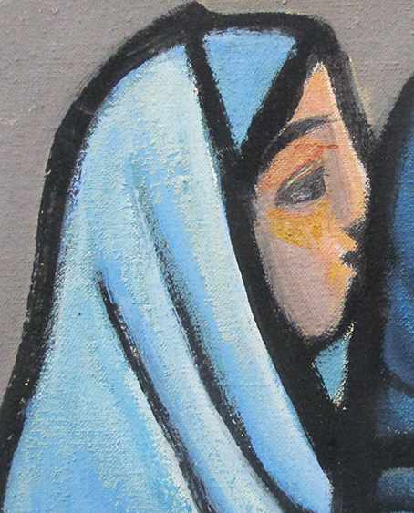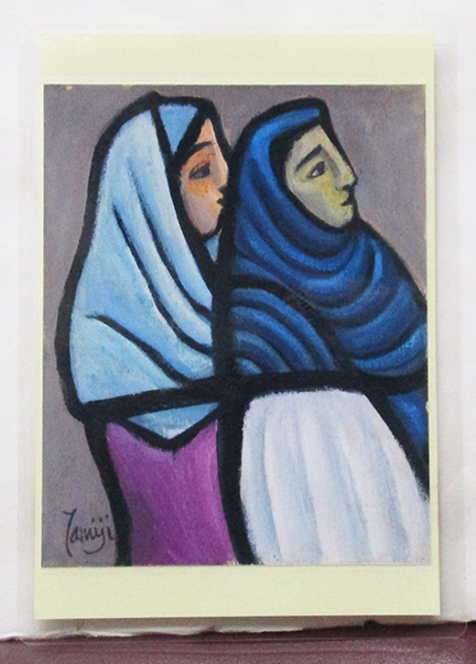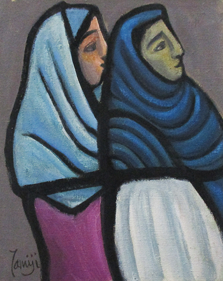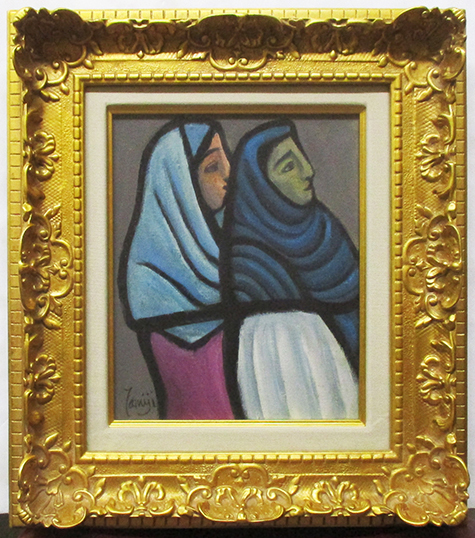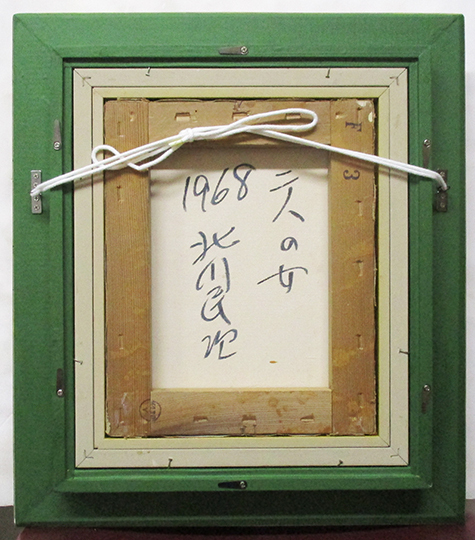 北川民次『二人の女』油彩、キャンバス F3号 サイン、裏書有 額、箱、黄袋付き 1968年制作 日本洋画商協同組合鑑定登録証書付き