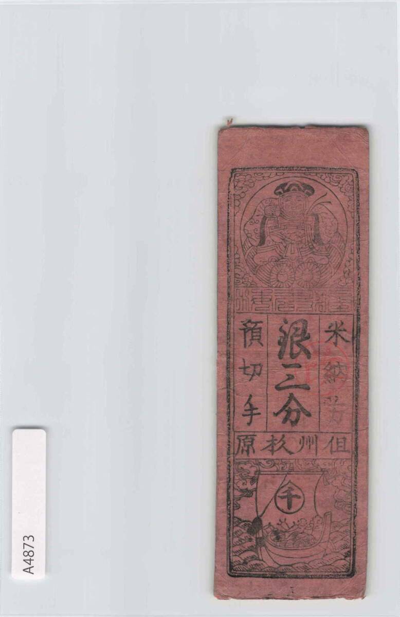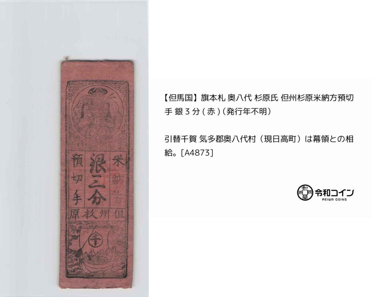 *[令]【但馬国】旗本札 奥八代 杉原氏 但州杉原米納方預切手 銀3分【詳細説明カード付】藩札,旗本札,日本古紙幣[A4873]7p7