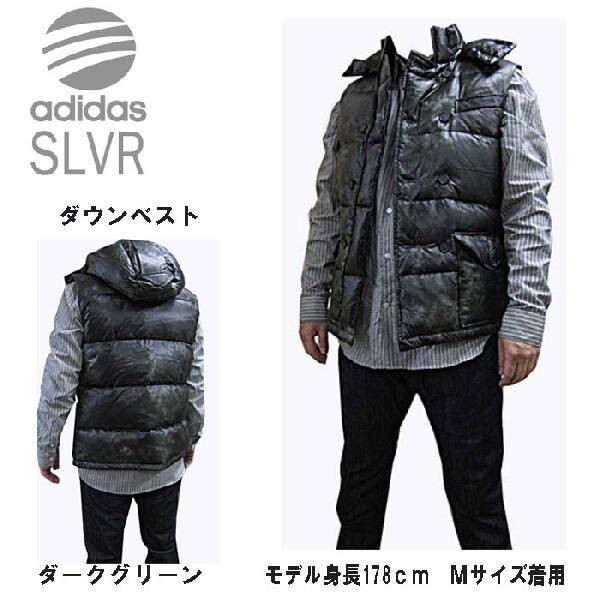 adidas(アディダス)SLVR ダウンベスト ダークグリーン(L)です。 ■サイズ 身幅約60cm 着丈約70cm。 ■素材 ポリエステル100% ダックダウン80%、フェザー20% adidas SLVRラインは スマートでお洒落。 さりげなくエレガントなスタイルで、 これまでのカジュアルウェアの 概念を変え、スポーツにインスパイアされた 上質仕立てのアイテムです。 ■特徴 表地は風を遮る素材、内側はダックダウンとフェザーで体を温めてくれます。色は濃いグリーンにブラックを混ぜたようなアーミーっぽいカラー。フロントはファスナーにボタン留め、ポケットは胸ポケット1ケ、ボタンポケット2ケ、ファスナー式内側ポケット1ケ。フードは取り外しできないタイプ。 ■画像2,3 モデル身長165cm、Sサイズ着用 | |||||