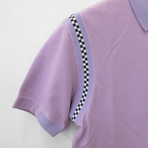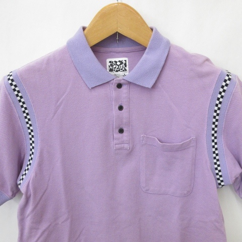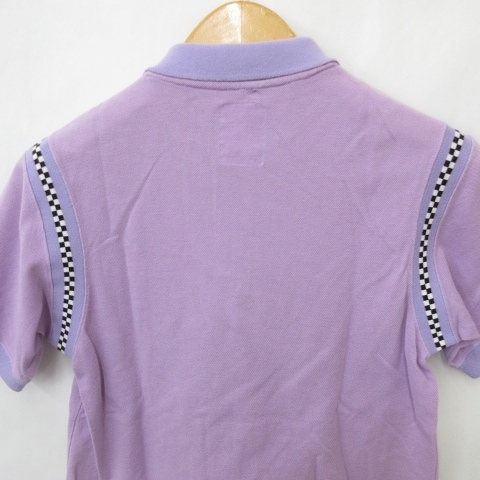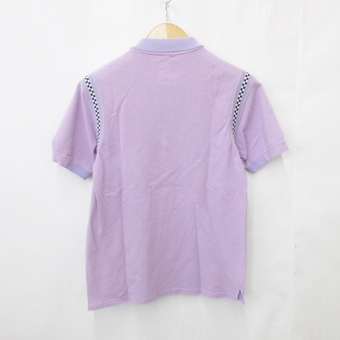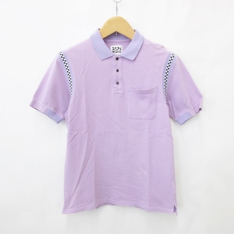 バル BAL ポロシャツ 古着 半袖 紫 白 黒 パープル ホワイト ブラック L メンズ
