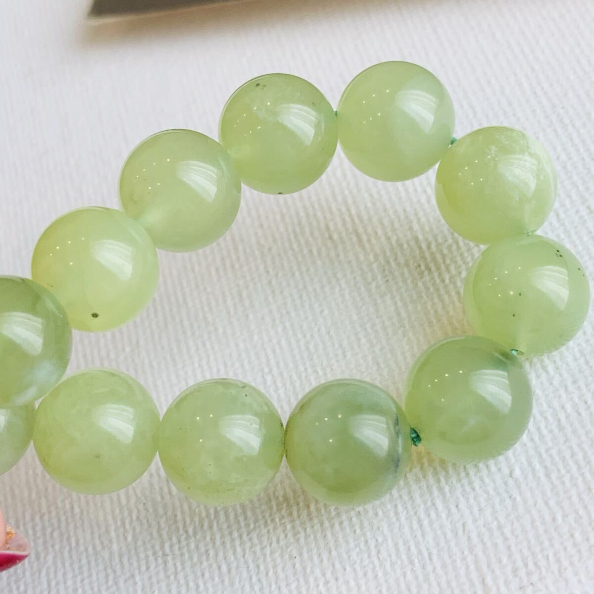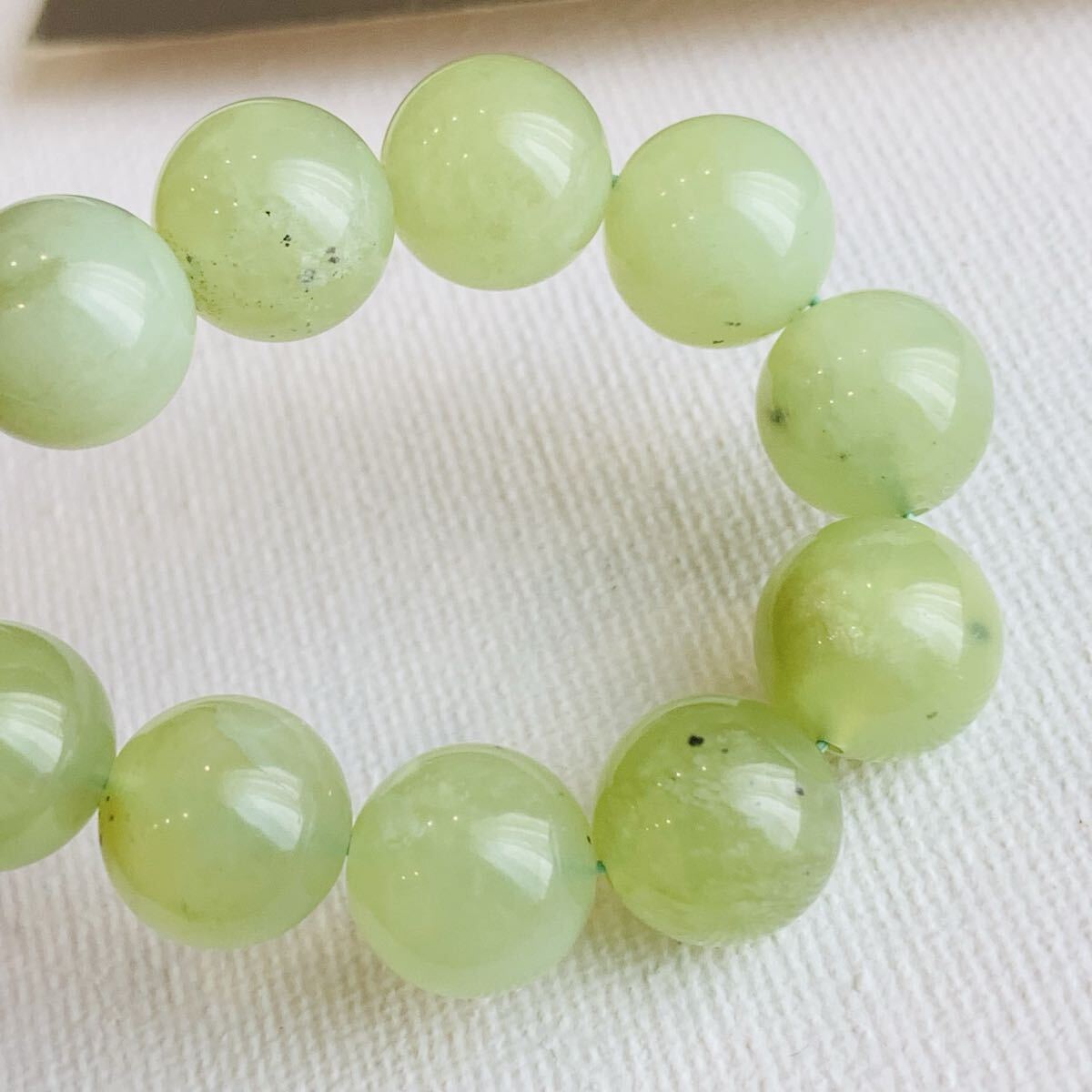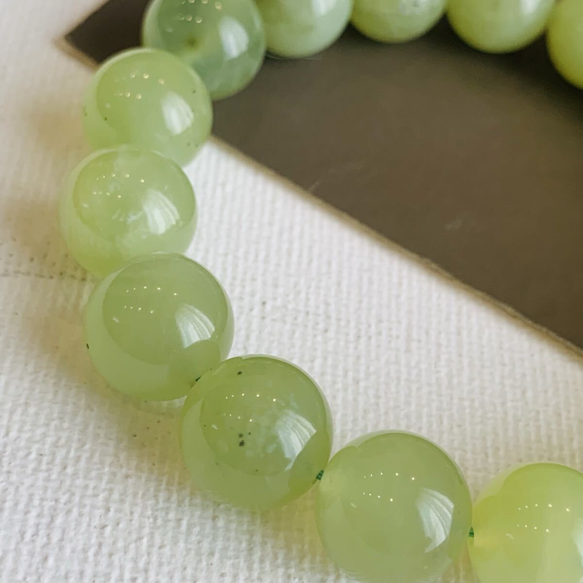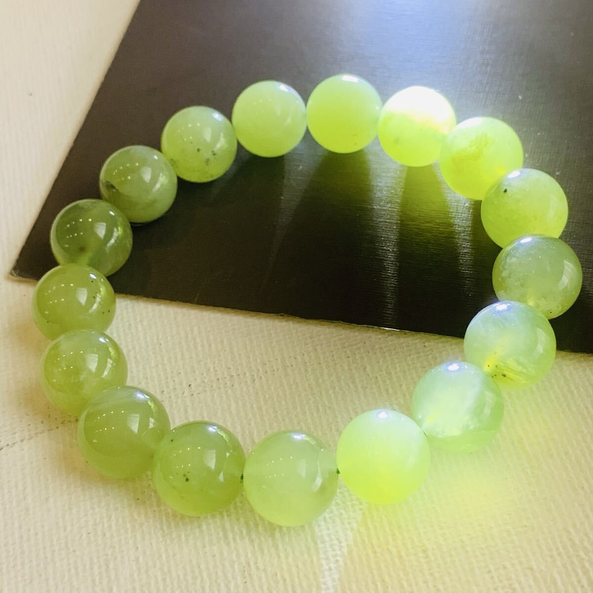 鉱物的には蛇紋岩(サーペンティン)の仲間で、透明感のある黄緑色の美しい石