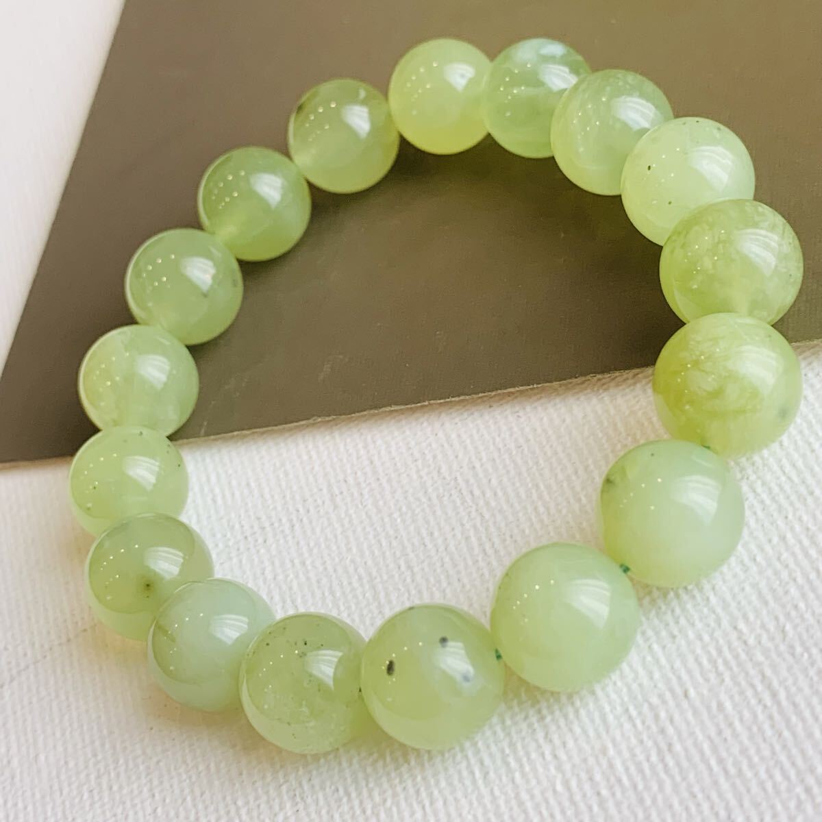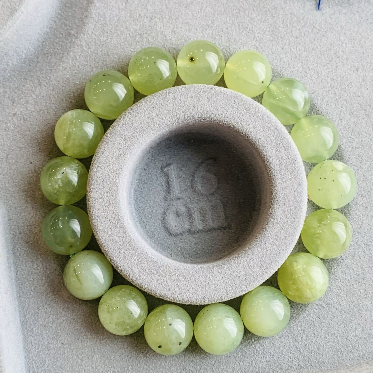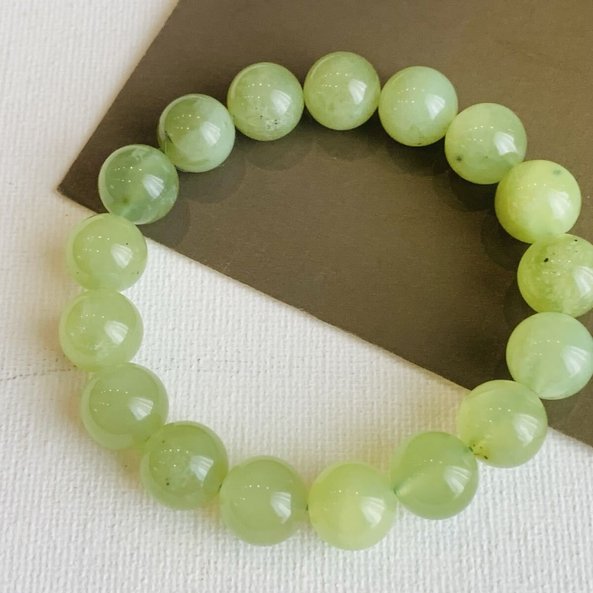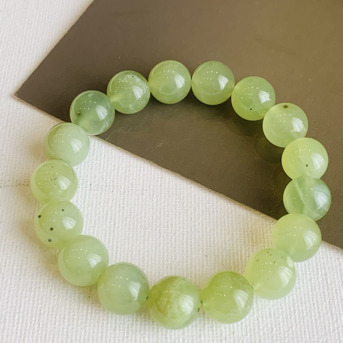 鉱物的には蛇紋岩(サーペンティン)の仲間で、透明感のある黄緑色の美しい石